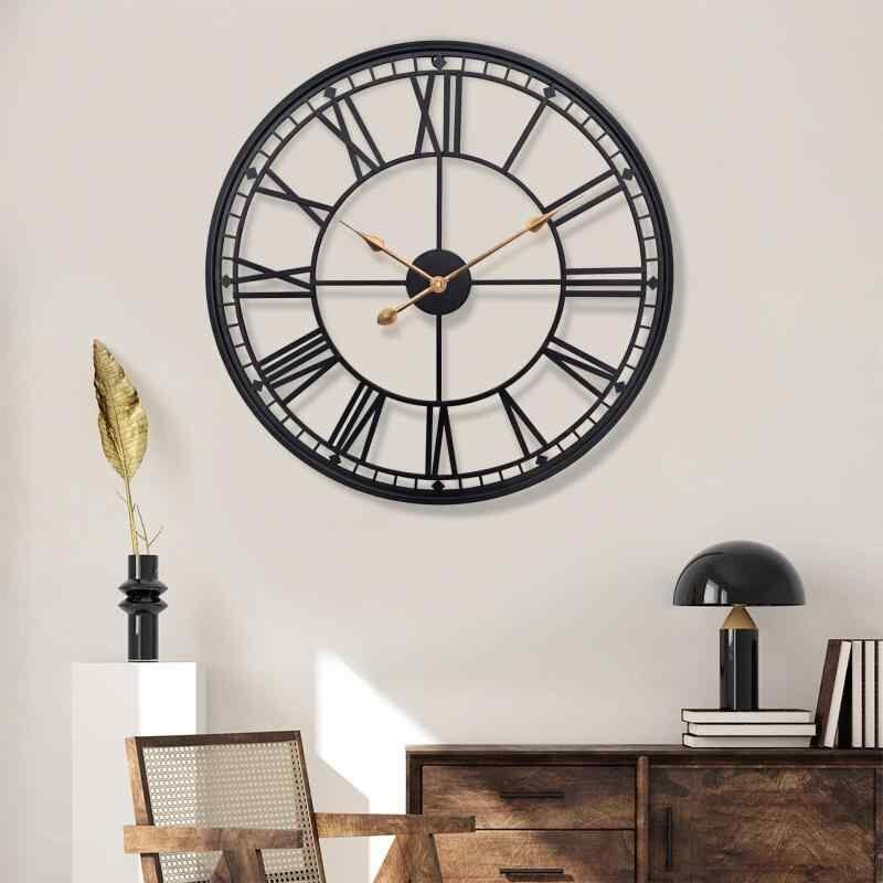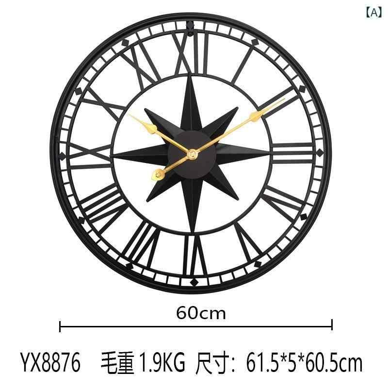 壁掛け時計 現代的 シンプル モダン リビングルーム 寝室 書斎 オフィス用 家庭用 レトロ アンティーク ホテル 店舗用 鉄製 アイアン 金属製 DIY クォーツ 静音 連続秒針 電池式 円形 丸型 おしゃれ インテリア 装飾