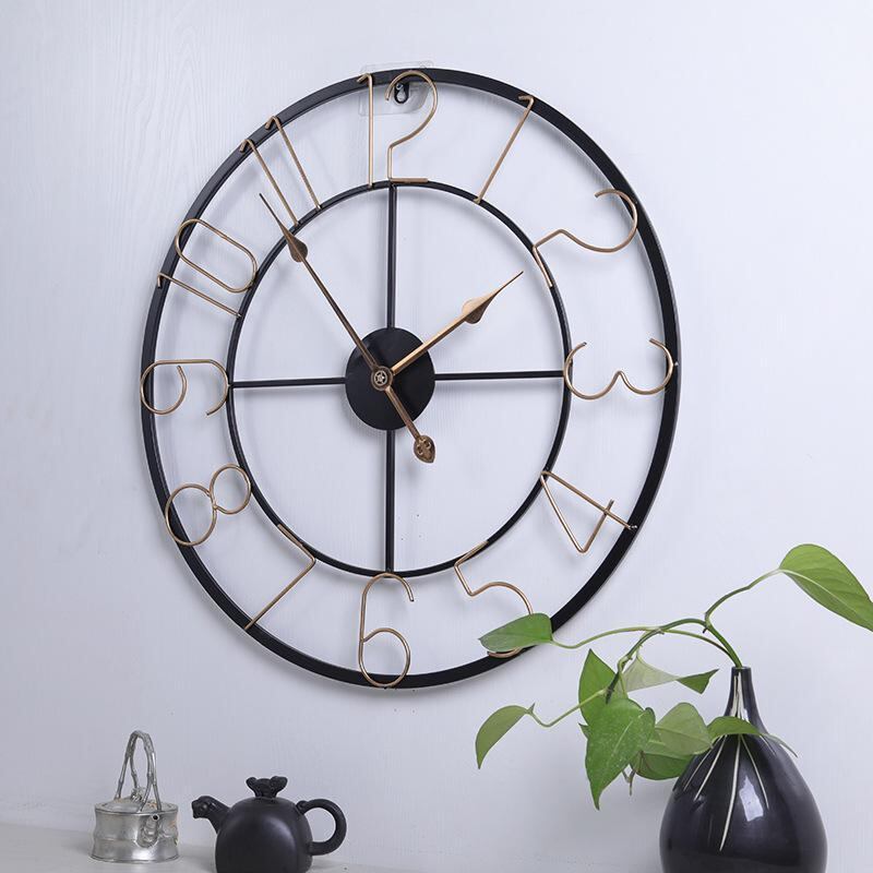 掛け時計 円形 大型 モダン シンプル サイレント アナログ デジタル表示 24時間表示 電池式 アイアン製 メタル製 リビング オフィス 書斎 キッチン 玄関 装飾 ウォールクロック