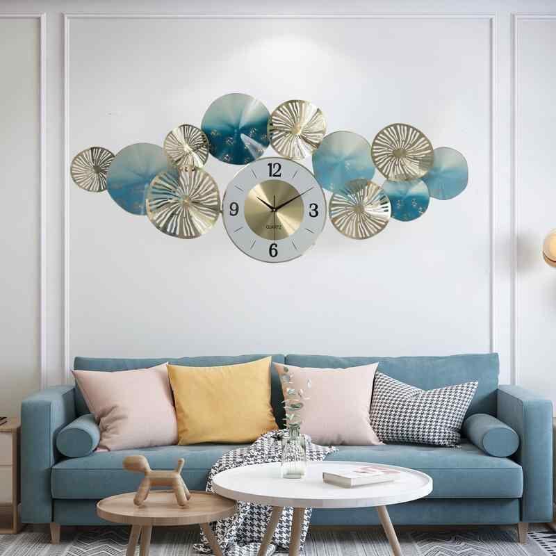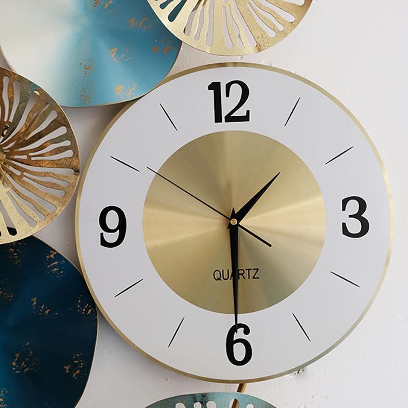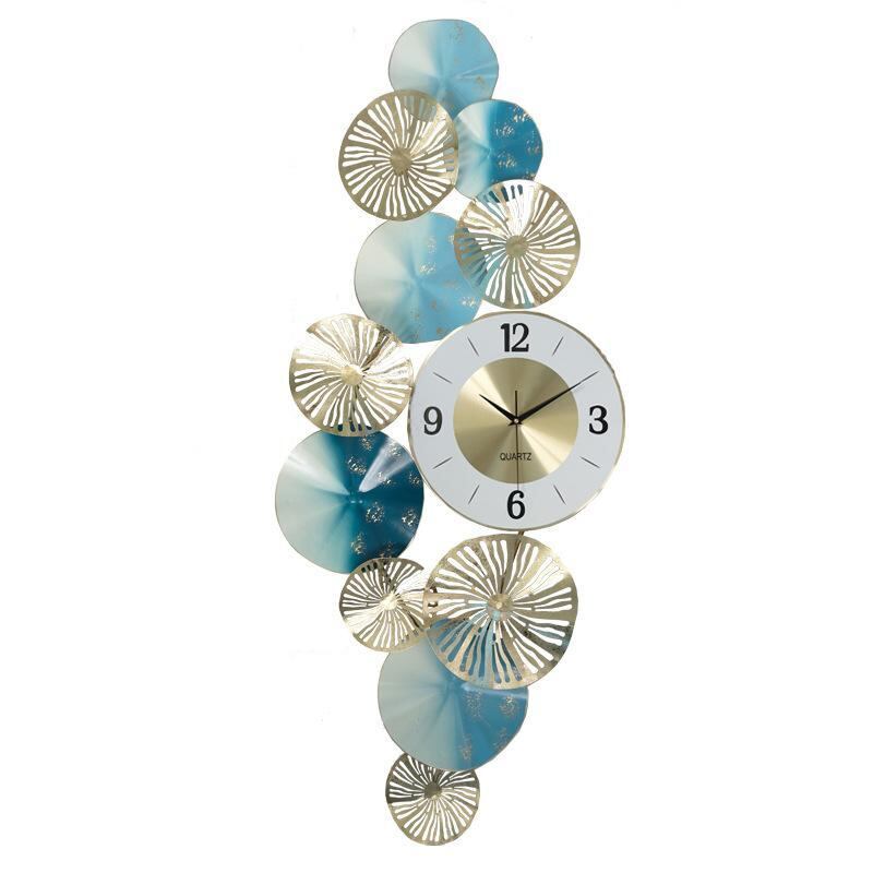 掛け時計 壁飾り モダン アジアンテイスト 鉄製 花モチーフ 静音 ライトラグジュアリー リビング 寝室 書斎 玄関 ダイニング オフィス 壁面装飾 アートパネル インテリア エレガント 金箔 藍色 上質