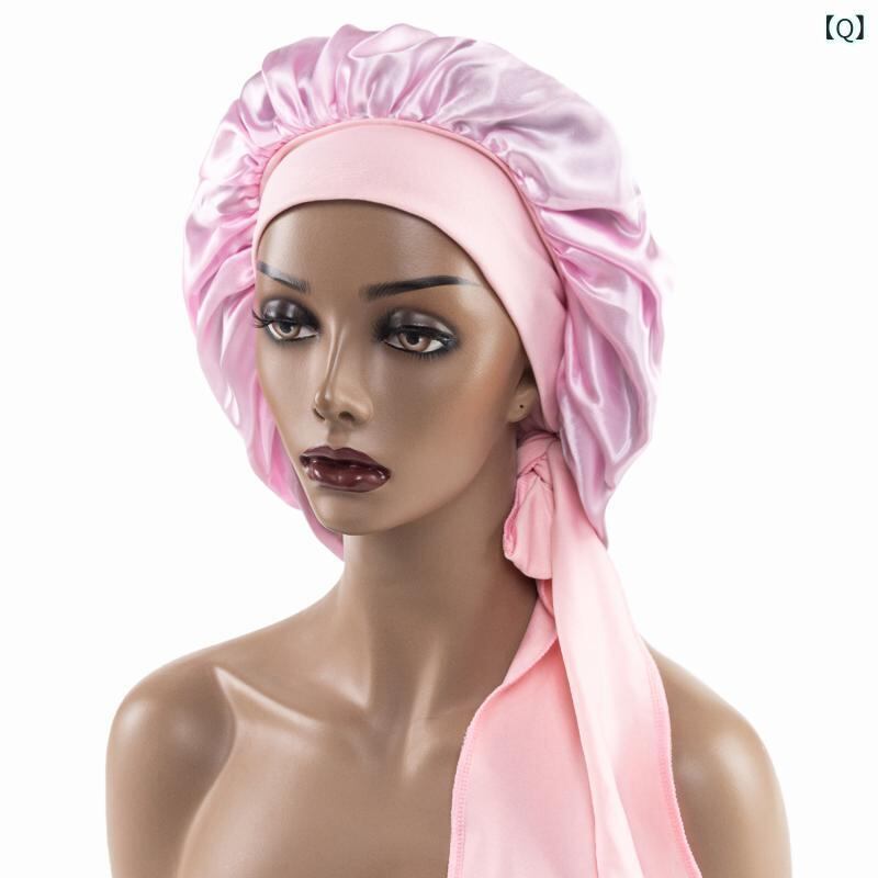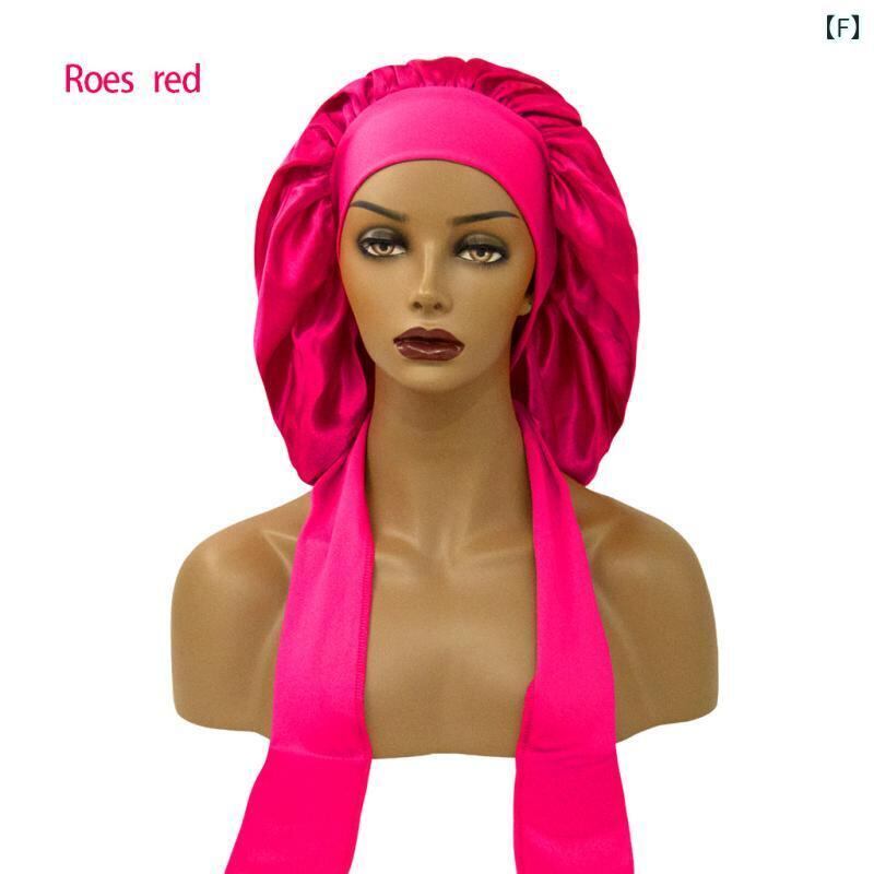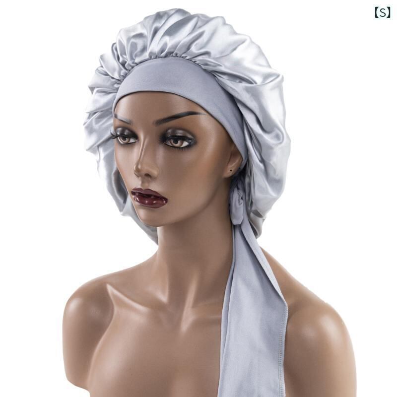 ナイトキャップ レディース サテン ポリエステル 欧米風 ワイドバンド ロングリボン ラウンド型 ゆったり フリーサイズ 寝癖防止 ヘアケア 通気性 日焼け防止 UVカット 普段使い