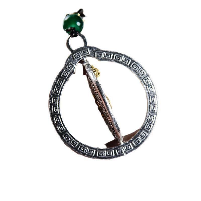 ペンダント スターリングシルバー 民族調 アンティーク風 透かし彫り 九宮八卦 丑年開運 富貴繁栄 招財運アップ シンプル カジュアル お守り チャーム