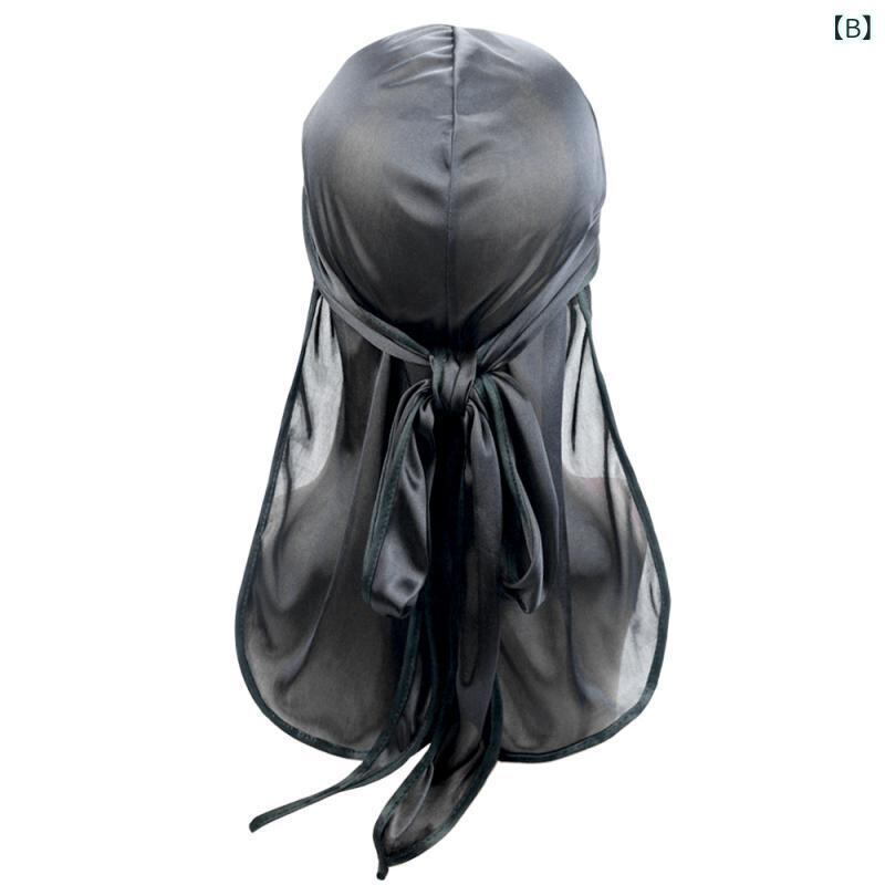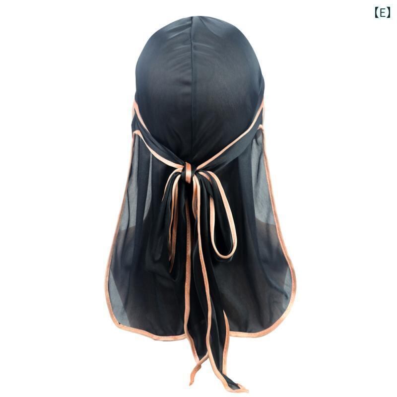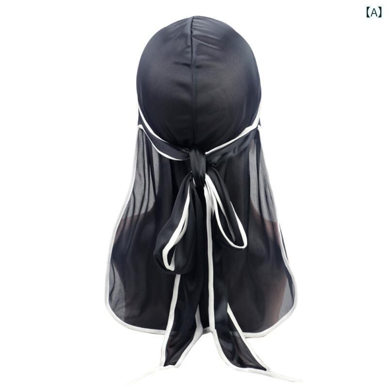 ドゥーラグ ロングテール サテン シルク調 伸縮性 通気性 UVカット 保温 パイピング バンダナキャップ ヘッドラップ