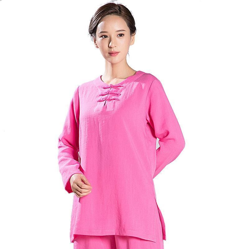 太極服 レディース 麻 リネン100% 春夏 練習着 稽古着 演武服 パフォーマンスウェア 軽量 動きやすい 吸湿性 通気性 白 ローズレッド ピンク系