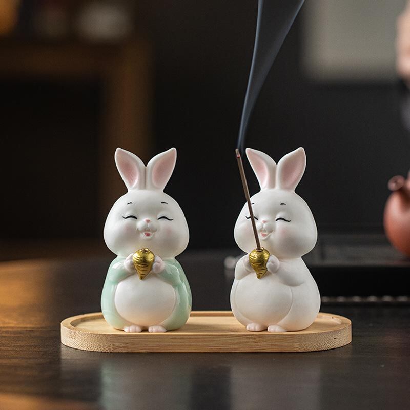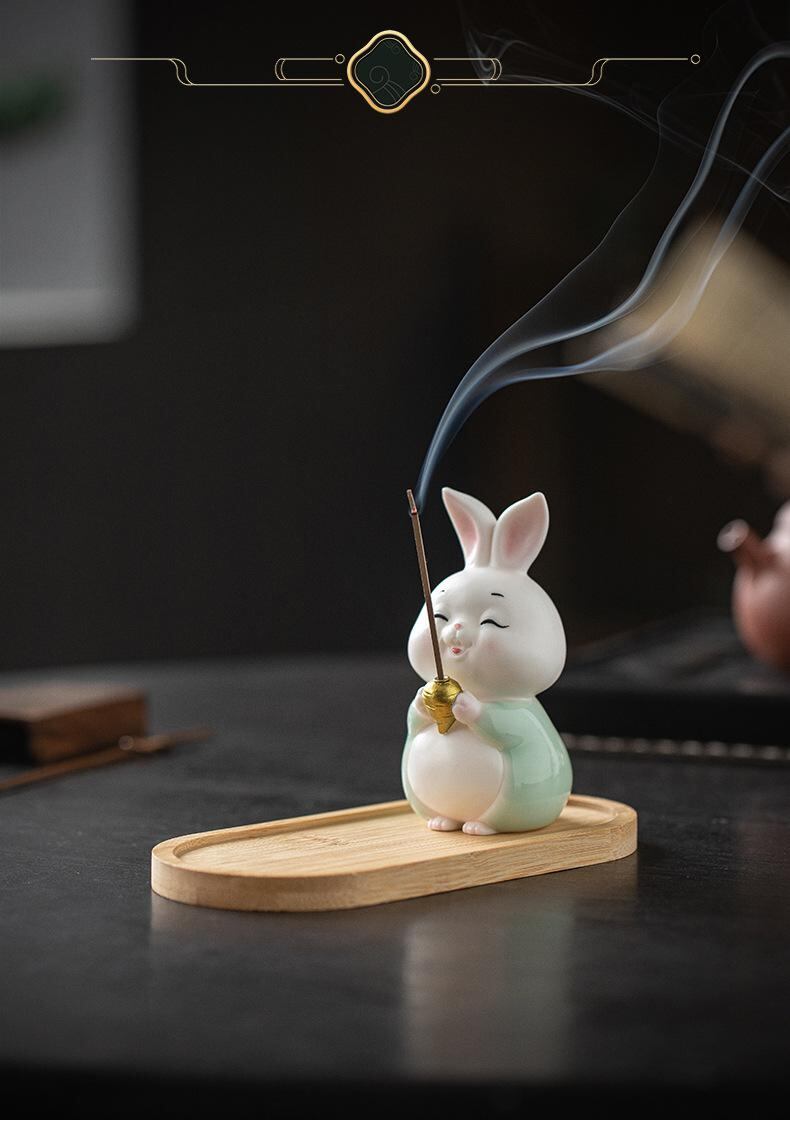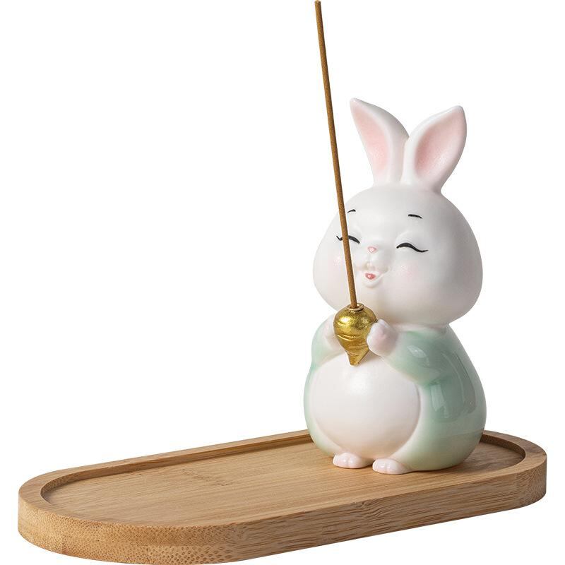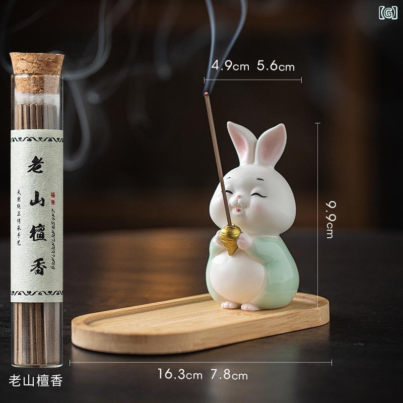 お香立て うさぎ 陶器 かわいい ユニークデザイン 線香 スティック香 香炉 香皿 リビング 玄関 卓上 インテリア雑貨 オブジェ 置物 和風 中華風 癒し リラックス
