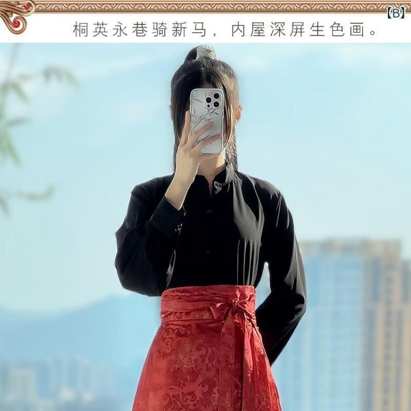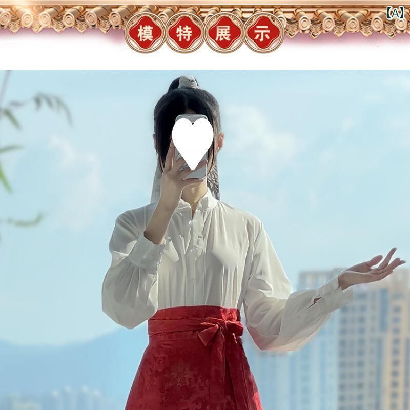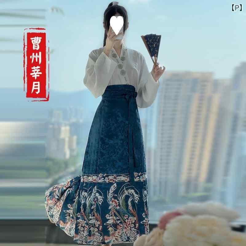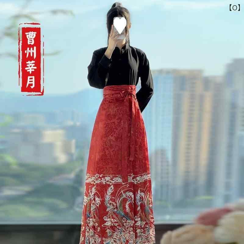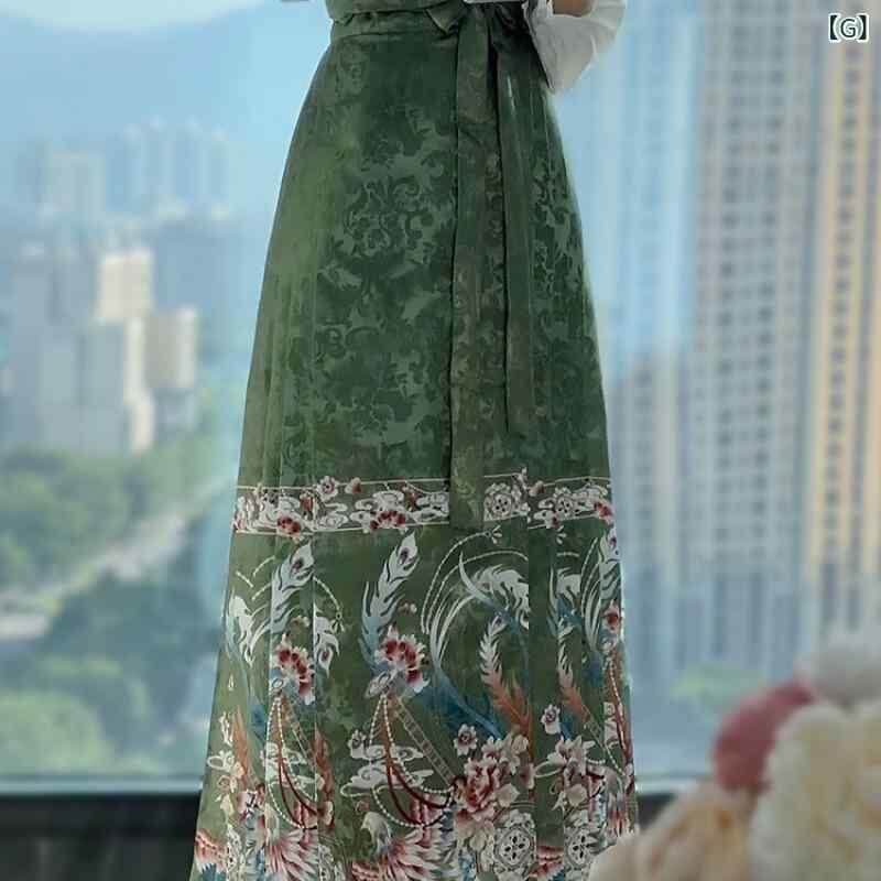 漢服 レディース 明朝風 立ち襟トップス 馬面スカート 上下セット 中国伝統衣装 デイリーユース 普段使い カジュアルスタイル プリント柄 ジャカード織り ポリエステル素材 高品質 オールシーズン