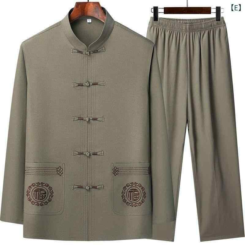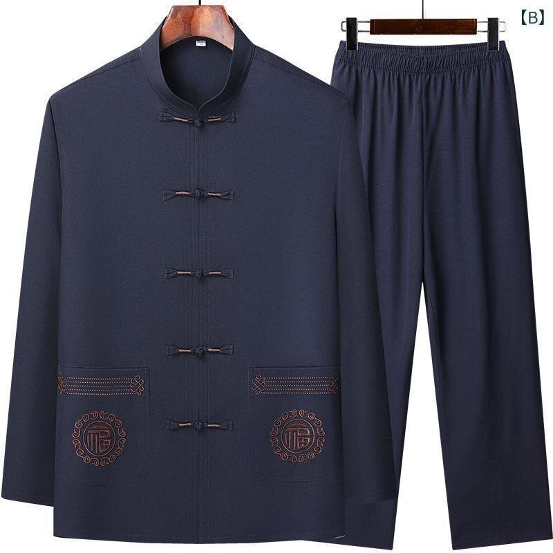 唐装 シニア 男性 夏物 長袖 接触冷感 セットアップ 中国風 シャツ トップス 父の日 プレゼント 普段着 リラックスウェア ポリエステル 吸湿速乾 ダークグレー ネイビー ライトグレー ベージュ カーキ