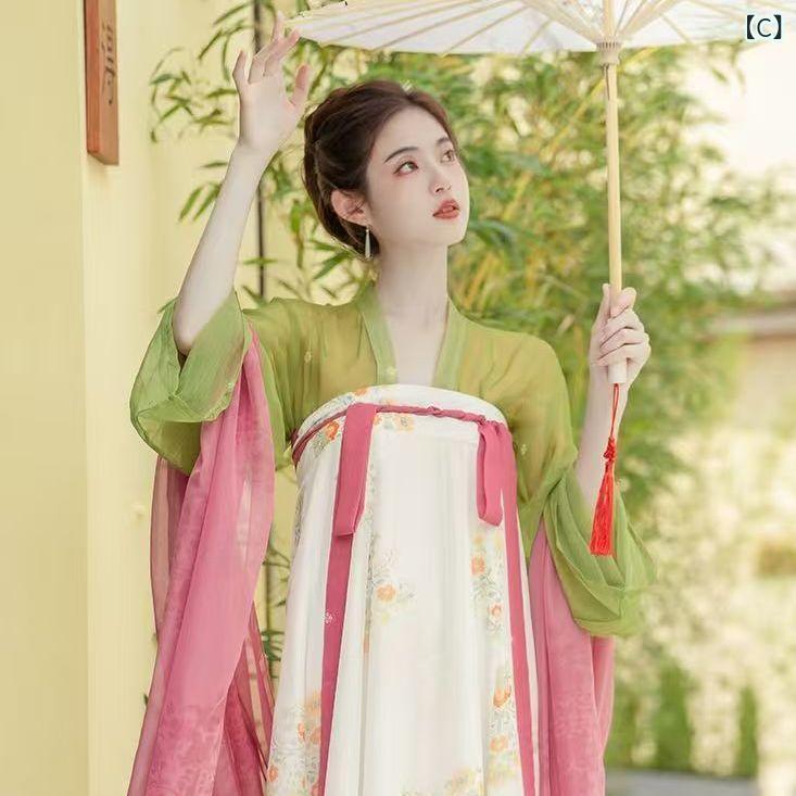 漢服 レディース ハイウエスト 八破スカート 花柄プリント 唐代風 復刻デザイン 伝統衣装 爽やか シェニール生地 イベント ステージ衣装 普段使い