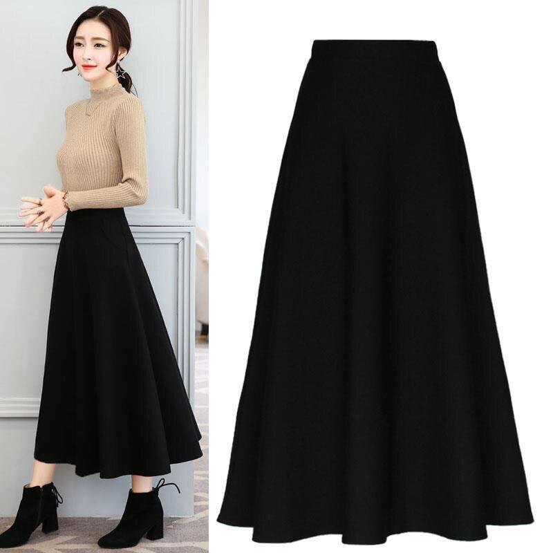 スカート レディース ゴムウエスト ハイウエスト フレア Aライン スタイルアップ 細見え ミモレ丈 ロング丈 着回し 万能 大きいサイズ ポリエステル 伸縮性 プリーツ 無地 通勤 オフィス 普段使い ダンス ブラック ワインレッド レッド
