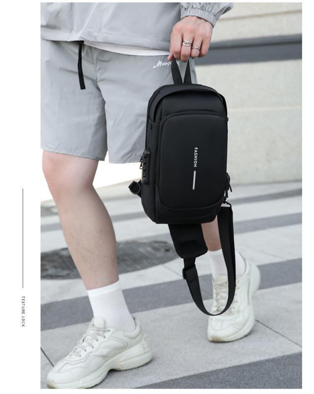 ボディバッグ メンズ 男性用 カジュアル ビジネス 旅行 トラベル 通勤通学 USBポート付き 防水 盗難防止 耐摩耗 大容量 ナイロン製 斜めがけ ワンショルダー スリングバッグ 8インチPC収納 無地 鞄