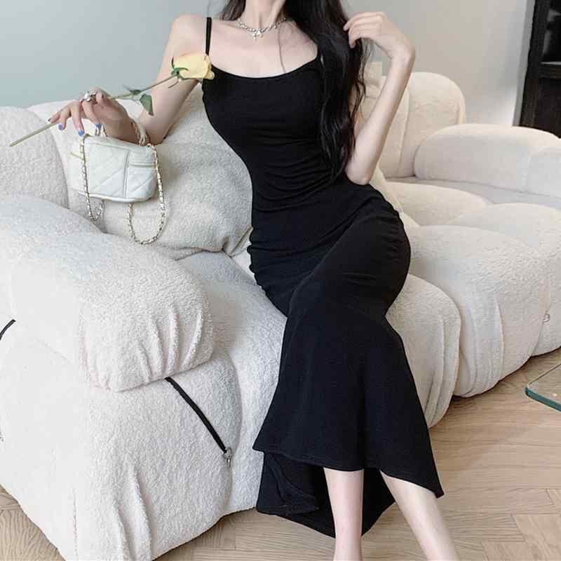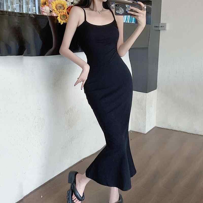 ワンピース レディース 大人可愛い レトロ マーメイド キャミソール ロング丈 ノースリーブ スクエアネック シンプル エレガント ウエストシェイプ 細見え 上品 フェミニン タイトシルエット ポリエステル 無地