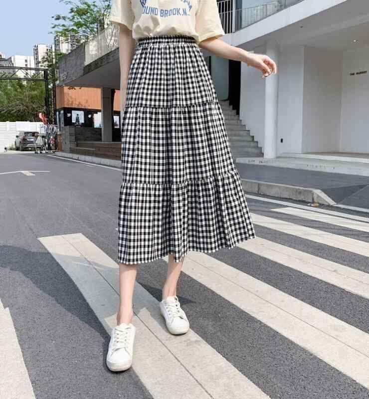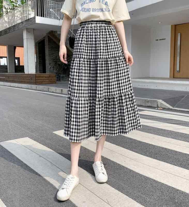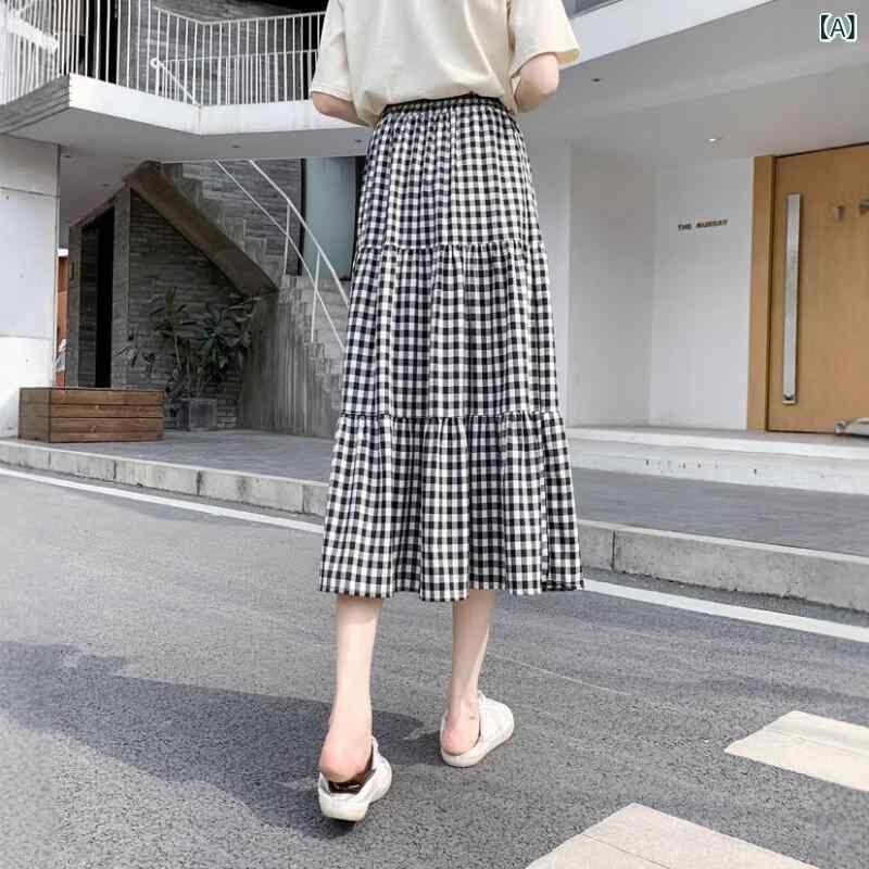 スカート レディース ハイウエスト Aライン フレア ミモレ丈 ティアード チェック柄 着痩せ レトロ 上品 ポリエステル ブラック 通勤 オフィススタイル