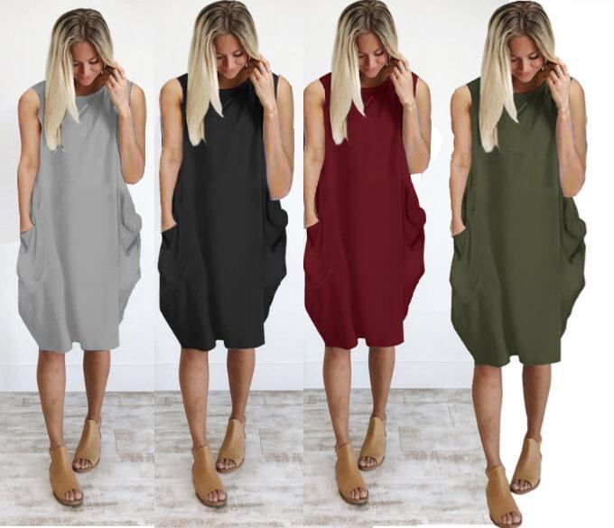 ワンピース レディース カジュアル ゆったり ポケット付き ノースリーブ クルーネック ミモレ丈 イレギュラーヘム 切り替え 大きいサイズ 綿麻混 無地