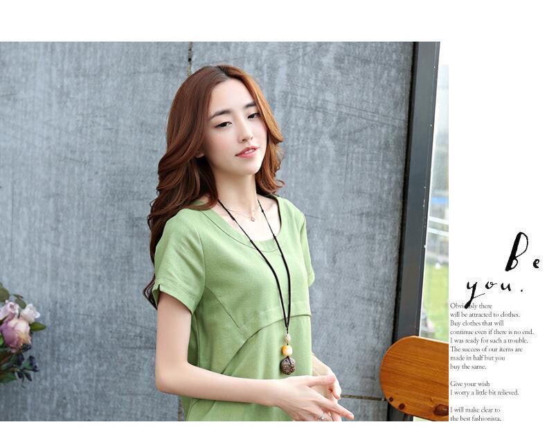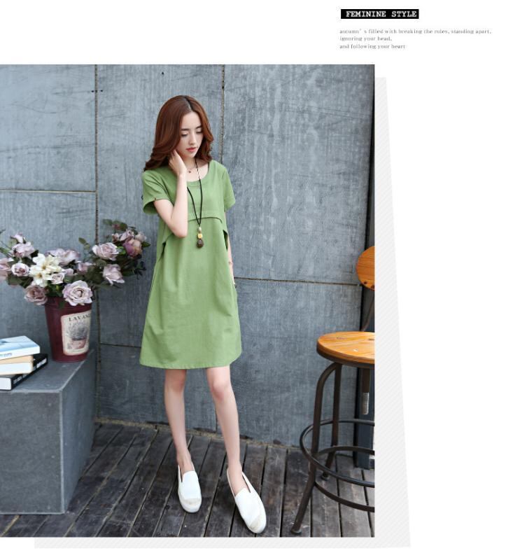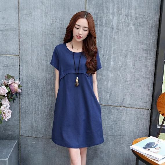 ワンピース レディース 大きいサイズ ゆったり 綿麻 リネン 薄手 半袖 ラウンドネック Aライン ミモレ丈 韓国風 カジュアル 普段使い リラックスウェア オレンジ グリーン ブルー ワインレッド