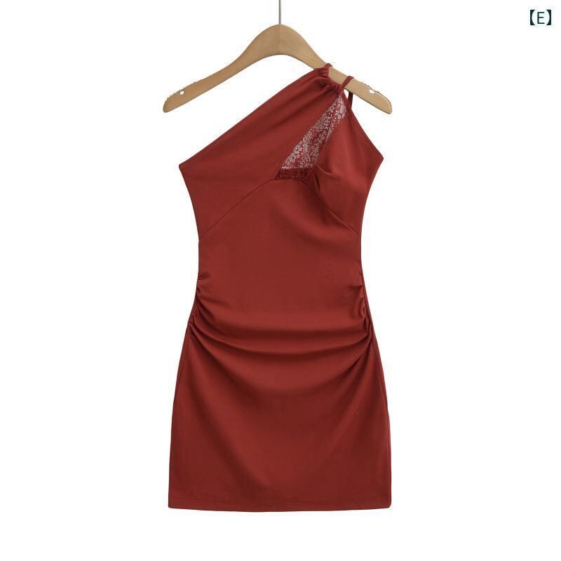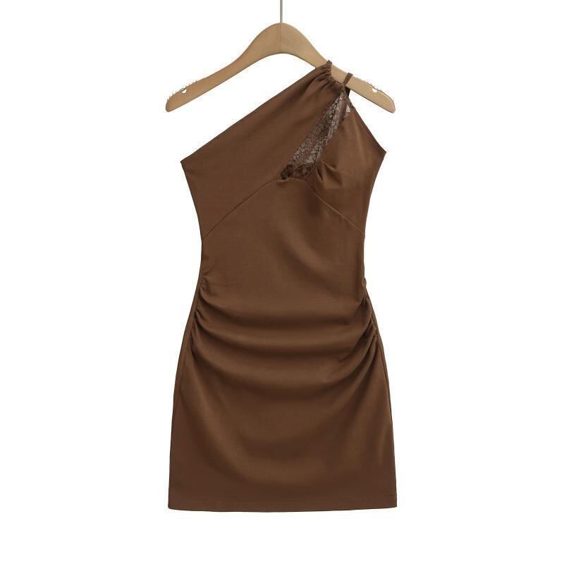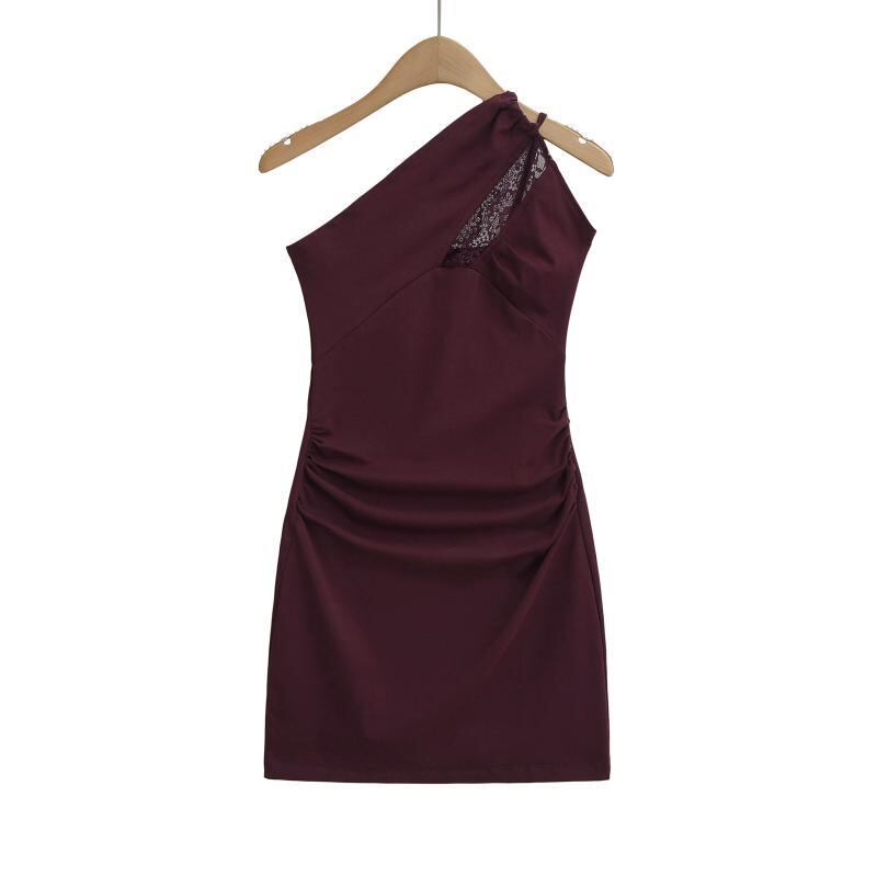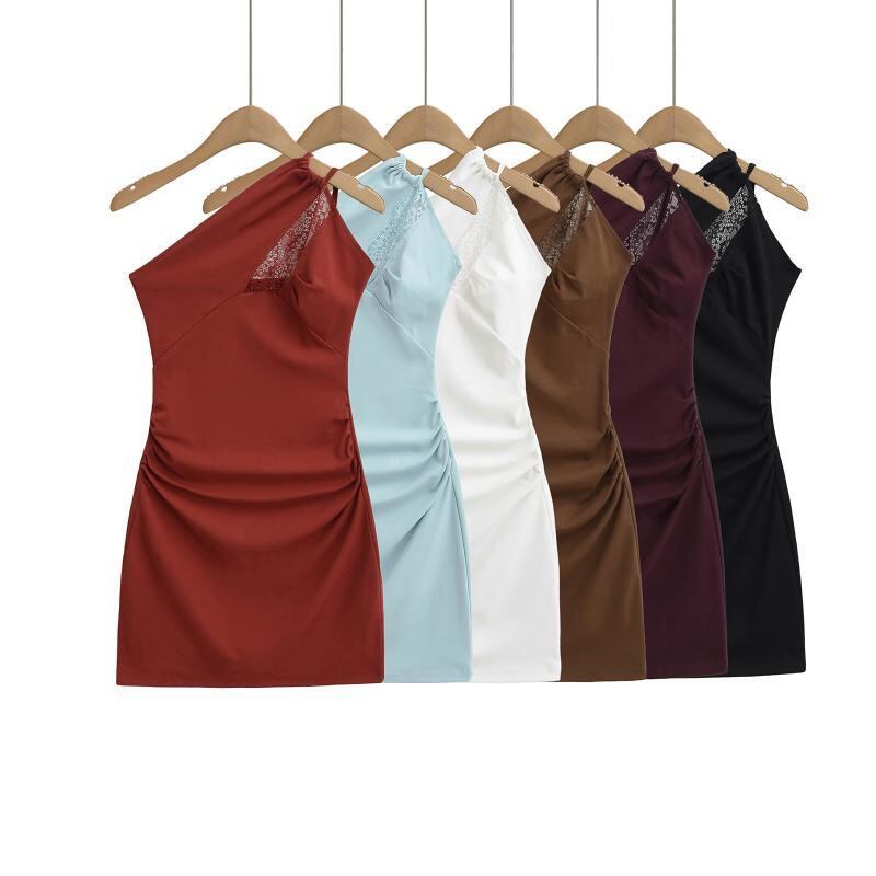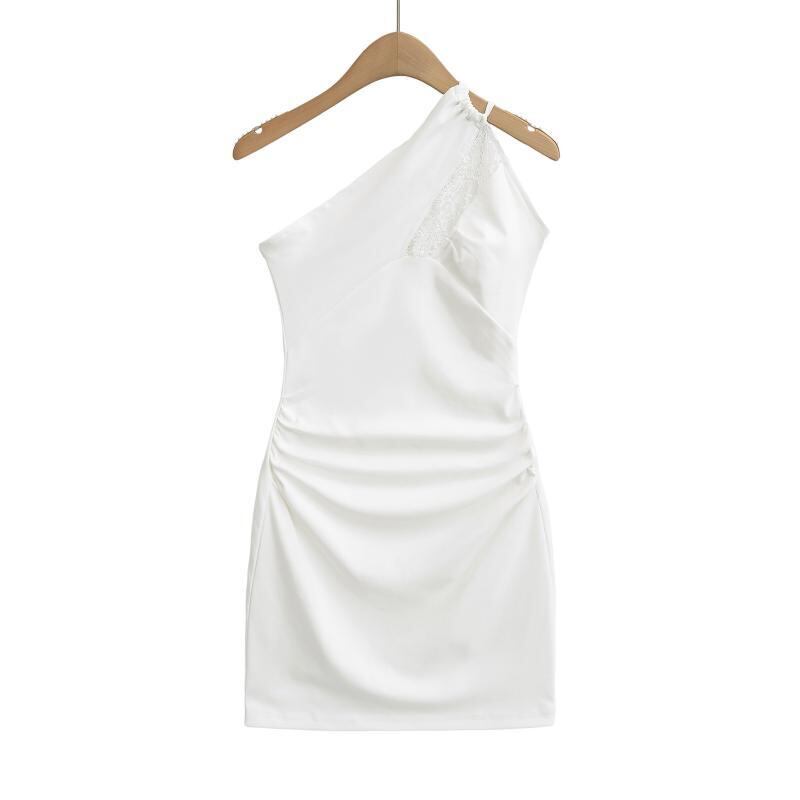 ワンピース レディース レース カットアウト セクシー ワンショルダー ホルターネック タイト ショート丈 プリーツ ギャザー スパンデックス素材 伸縮性 ストレッチ パーティー イベント ドレス ブラック ホワイト