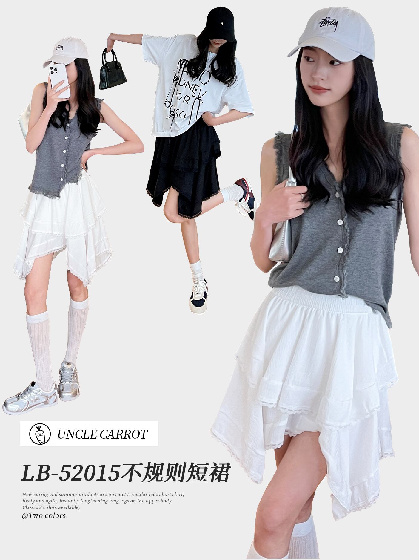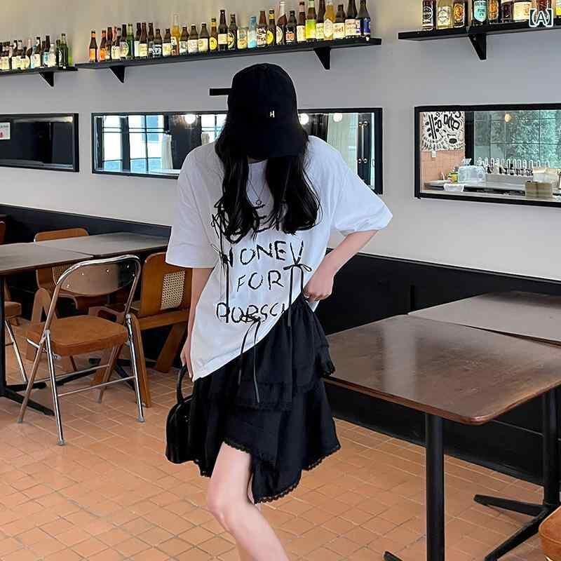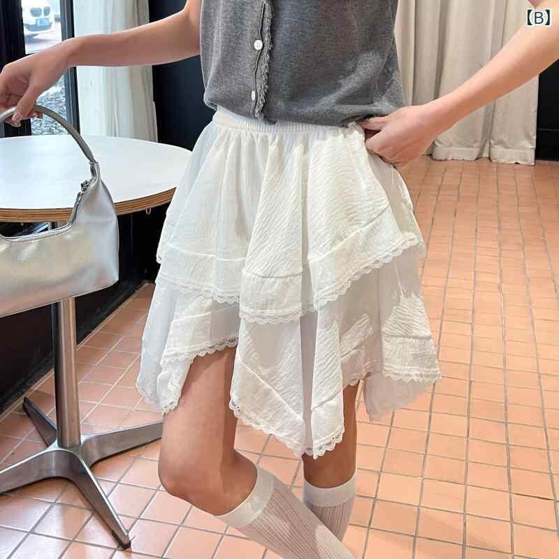 スカート レディース レース フリル ハイウエスト アシンメトリー ミニ丈 レーヨン ナイロン混紡 シワ加工 ストレッチ カジュアル デイリーユース ブラック ホワイト