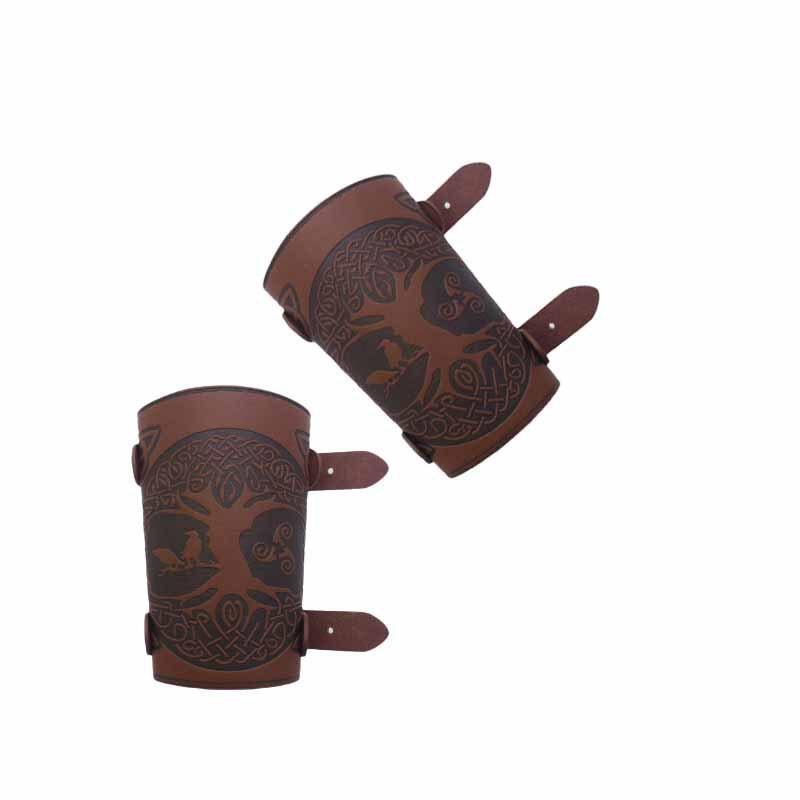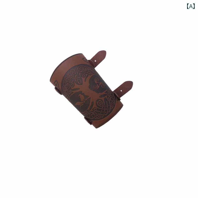 護腕 リストバンド 中世風 レトロ ヴィンテージ 欧米ファンタジー風 型押し 金属バックル レザー調 ブラウン カーキ バーガンディ コスプレ 仮装 イベント 舞台 演劇 ハロウィン | cybercart