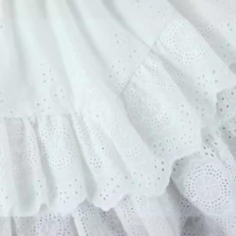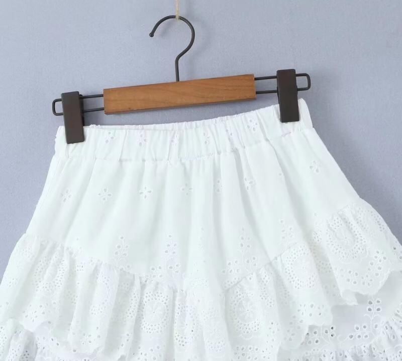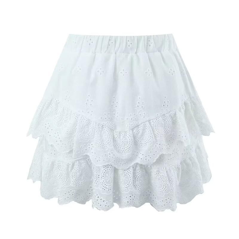 ショートスカート レディース 春秋 ホワイト フレンチ バレエ風 ハイウエスト Aライン ふんわり ボリューム ティアード フリル レース 刺繍 綿 再生繊維