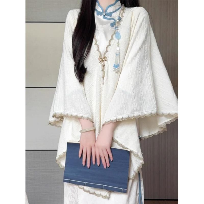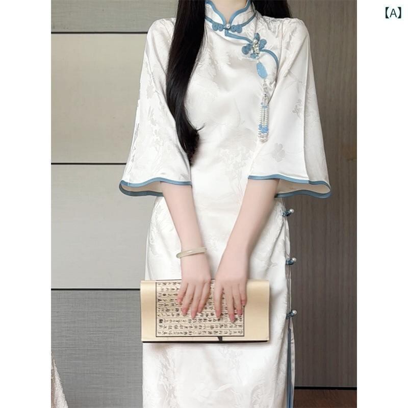 チャイナドレス レディース 大きいサイズ 春秋物 新中式 改良 ロング丈 長袖 ホルターネック フリル袖 ポリエステル ジャガード織り エレガント 通勤 ぽっちゃりさん向け
