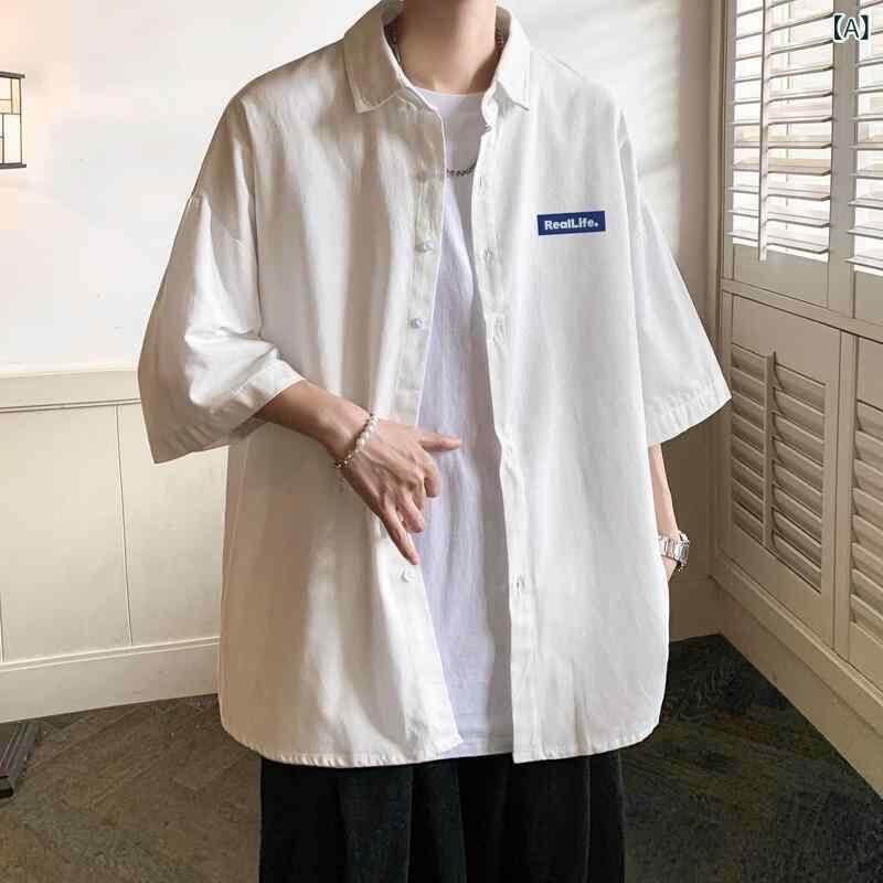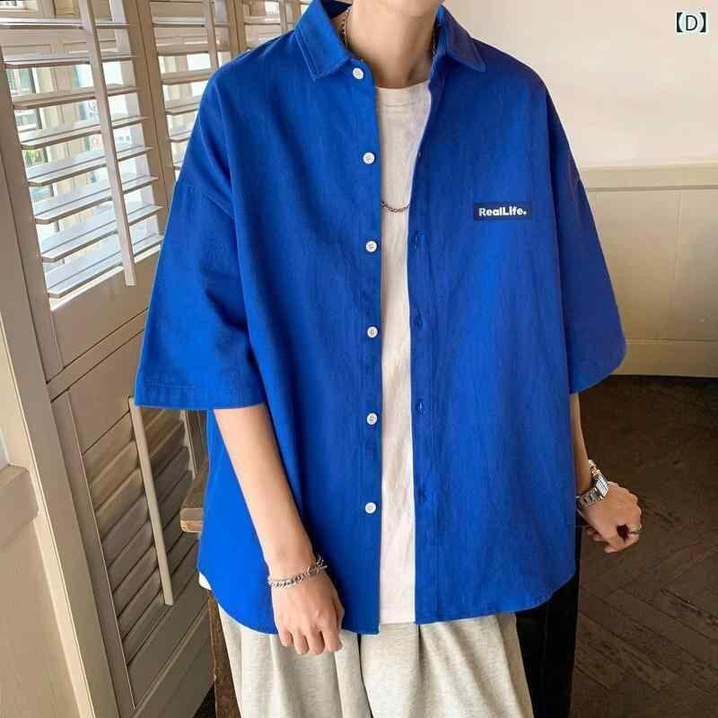 シャツ メンズ 夏 薄手 半袖 日系 レトロ ゆったり オーバーサイズ オープンカラー ポリエステル ウォッシャブル イージーケア スポーツカジュアル 白 黒 ピンク 青