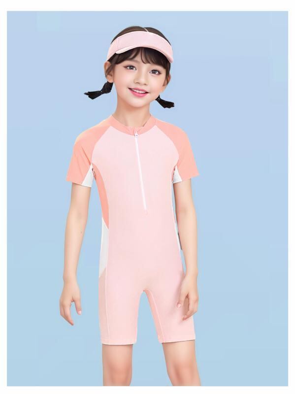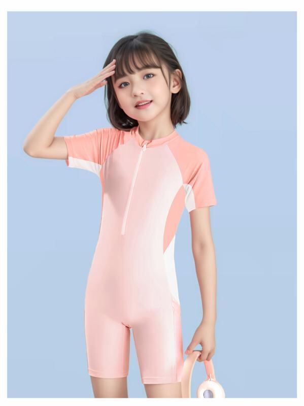 水着 女の子 ワンピース 小中学生 スイミング練習用 ポリエステル 高弾性 ストレッチ 配色 バイカラー ピンク ブルー スイムウェア プール 海