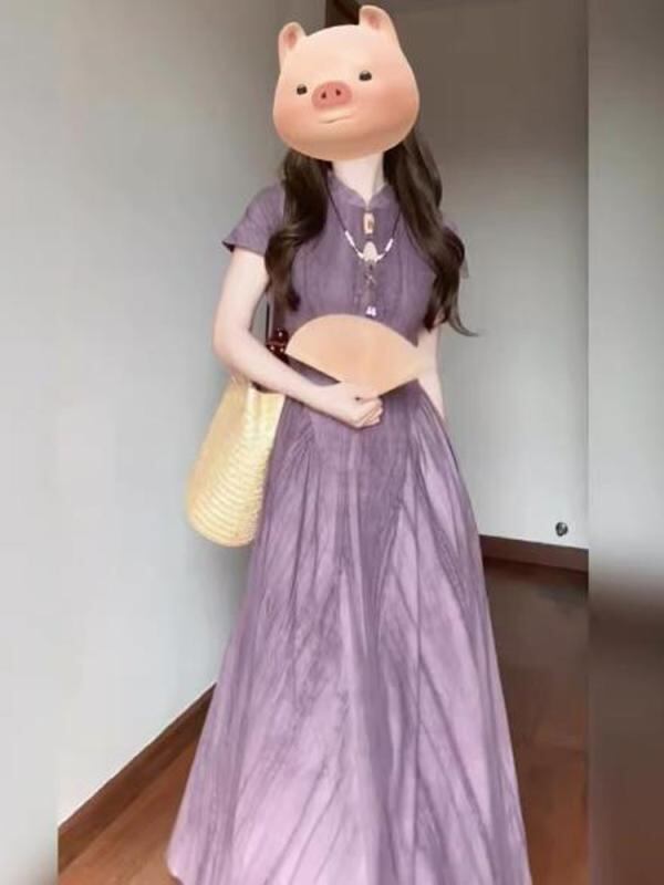 ワンピース レディース プラスサイズ 新中華風 絞り染め チャイナドレス 透かし編み ウエストマーク 着痩せ スタイルアップ 上品 エレガント Aライン ラウンドネック 長袖 ポリエステル ショート丈 お呼ばれ フォーマル