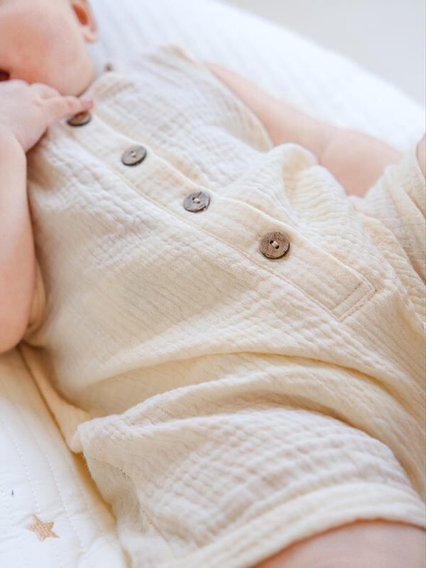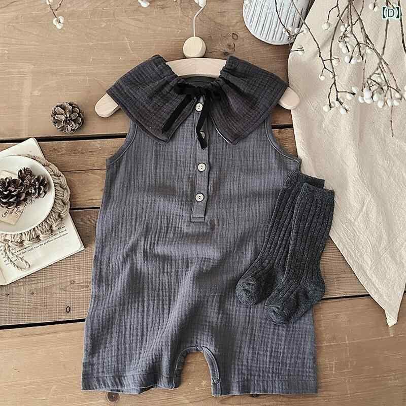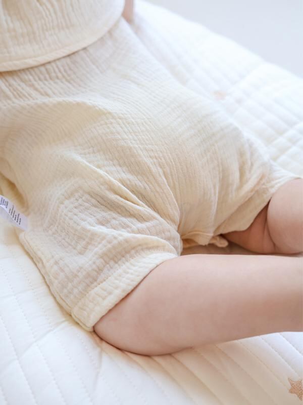 ロンパース カバーオール ベビー 男女兼用 夏用 薄手 ノースリーブ 綿100% ガーゼ素材 通気性 吸湿性 快適 パジャマ 部屋着 普段使い ホワイト グリーン イエロー グレー
