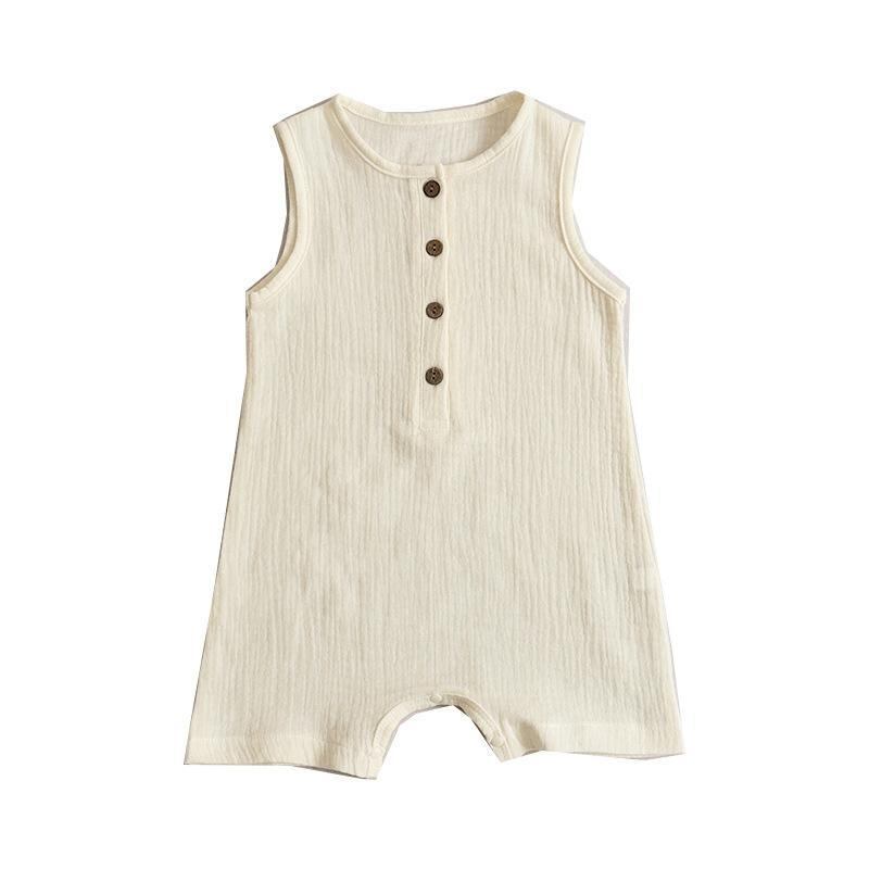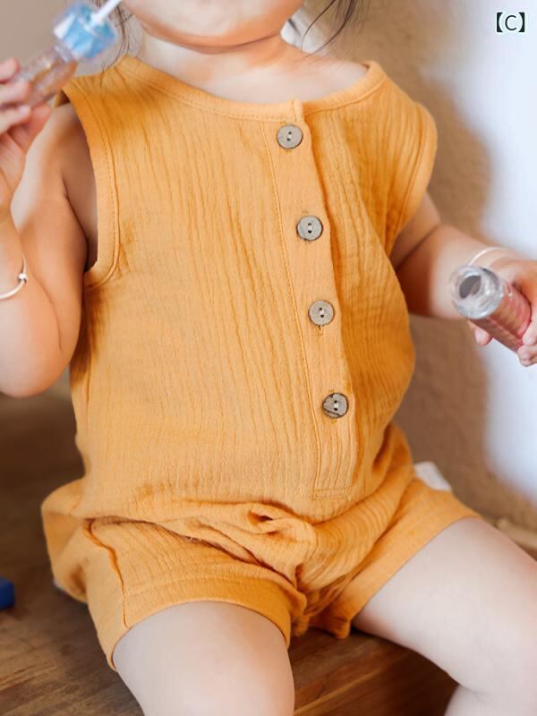 ロンパース ベビー 乳幼児 夏用 ノースリーブ 綿100% ガーゼ 薄手 吸湿速乾 通気性 快適 肌触り柔らか 男女兼用 カバーオール ショート丈 パジャマ 部屋着 グリーン ホワイト イエロー グレー