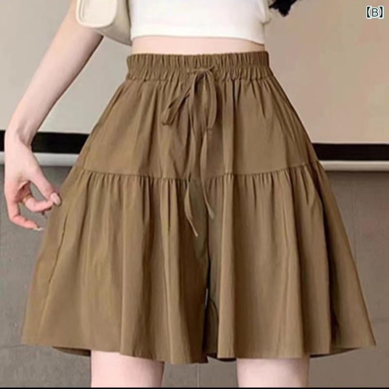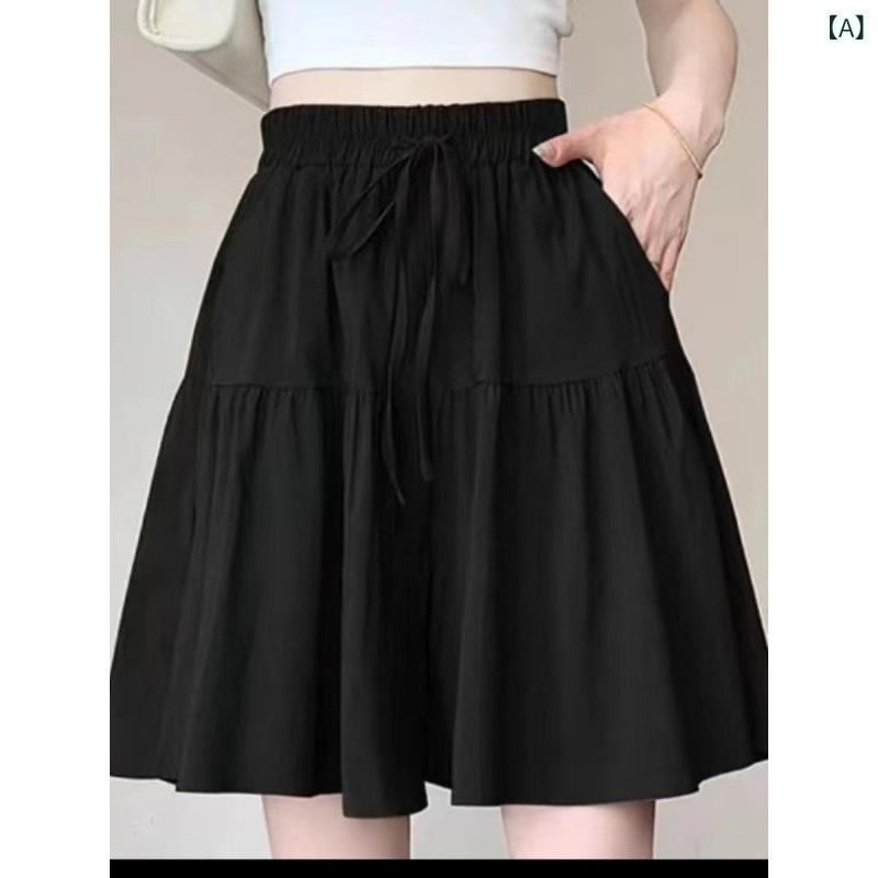 スカートパンツ レディース スカンツ ゆったり ルーズフィット リラックス 接触冷感 速乾 薄手 ワイド ショート ハーフ丈 五分丈パンツ 短パン カジュアル 普段使い 部屋着 夏用 ポリエステル ストレッチ 大きいサイズ ビッグシルエット