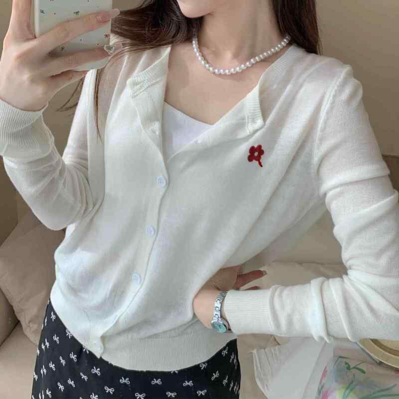 カーディガン レディース UVカット 長袖 薄手 接触冷感 ショート丈 冷房対策 羽織り 白 夏物 ポリエステル 韓国風 カジュアル 日焼け対策
