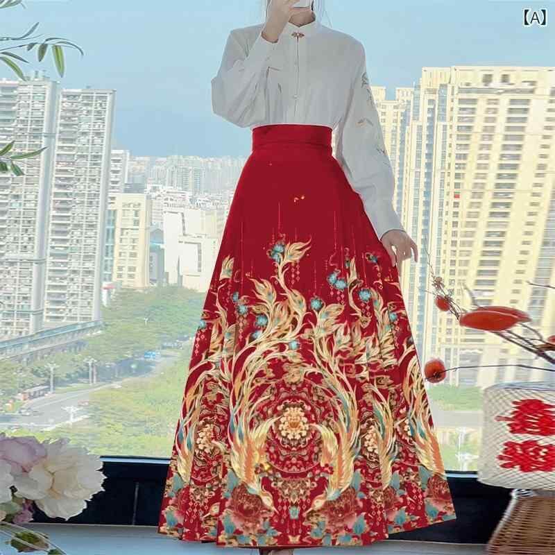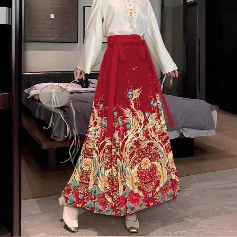 漢服 レディース 馬面プリーツスカート セットアップ ロング丈 Aライン ボリュームフレア ポリエステル シワになりにくい 幾何学模様 オールシーズン お洒落着 イベント カジュアル