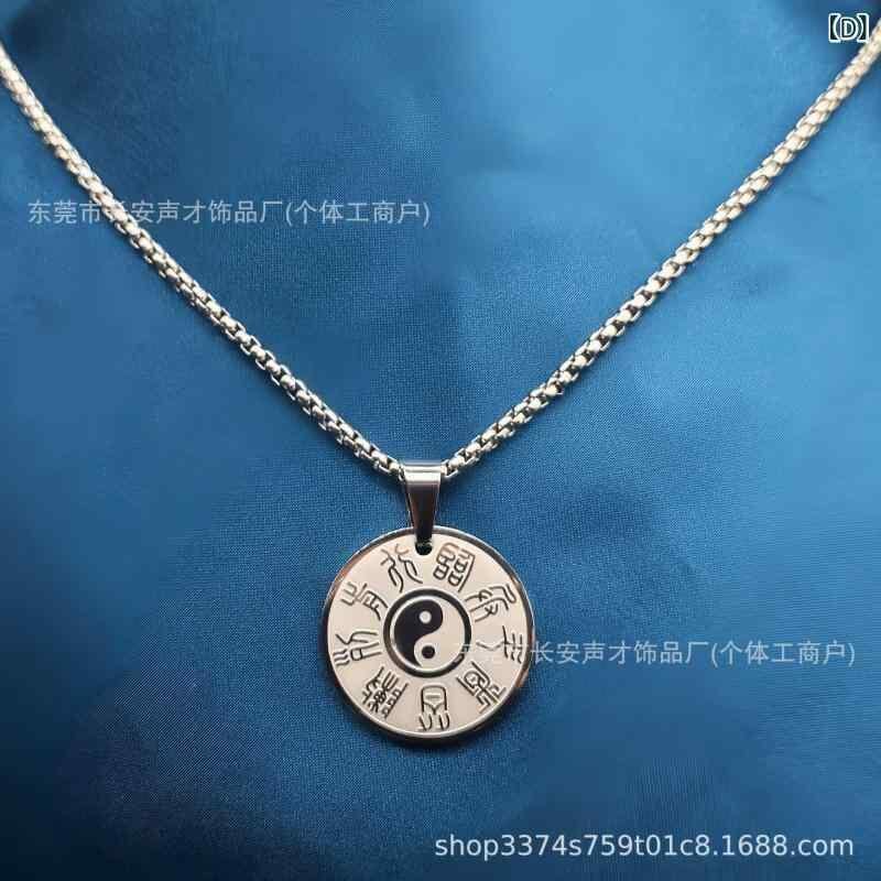 ネックレス 道教 太極 九宮八卦 十字天経 五嶽真形図 玄武 チタン鋼 ペンダント プレート 飾り 中国風 民族風 レトロ 吉祥模様 ゴールド シルバー