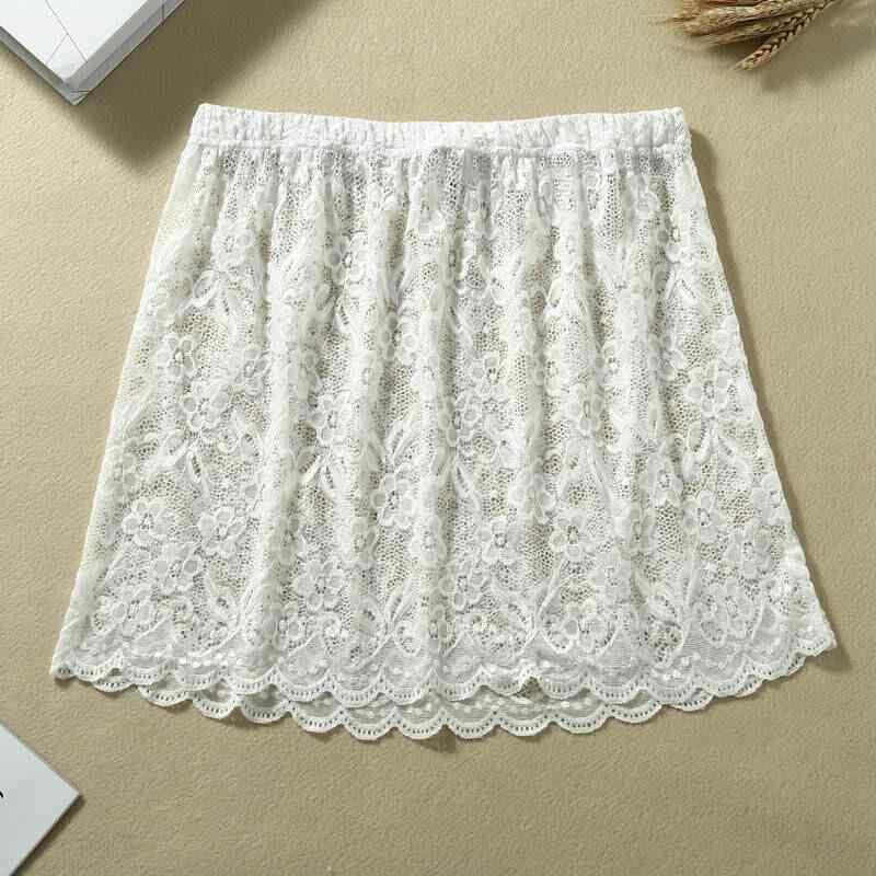 つけ裾 レディース レース フェイクレイヤード ヒップカバー 大きいサイズ 体型カバー ショート丈 フレアシルエット かわいい ポリエステル素材 ストレッチ性 カジュアル 重ね着スタイル 白 黒 着回し 春秋
