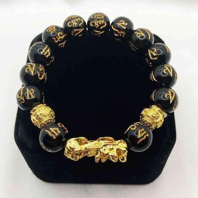 ブレスレット 男女兼用 合金製 色落ちしにくい フェイクオニキス 金色 ヒキュウ 六字真言 開運 幸運 お守り シンプル 普段使い