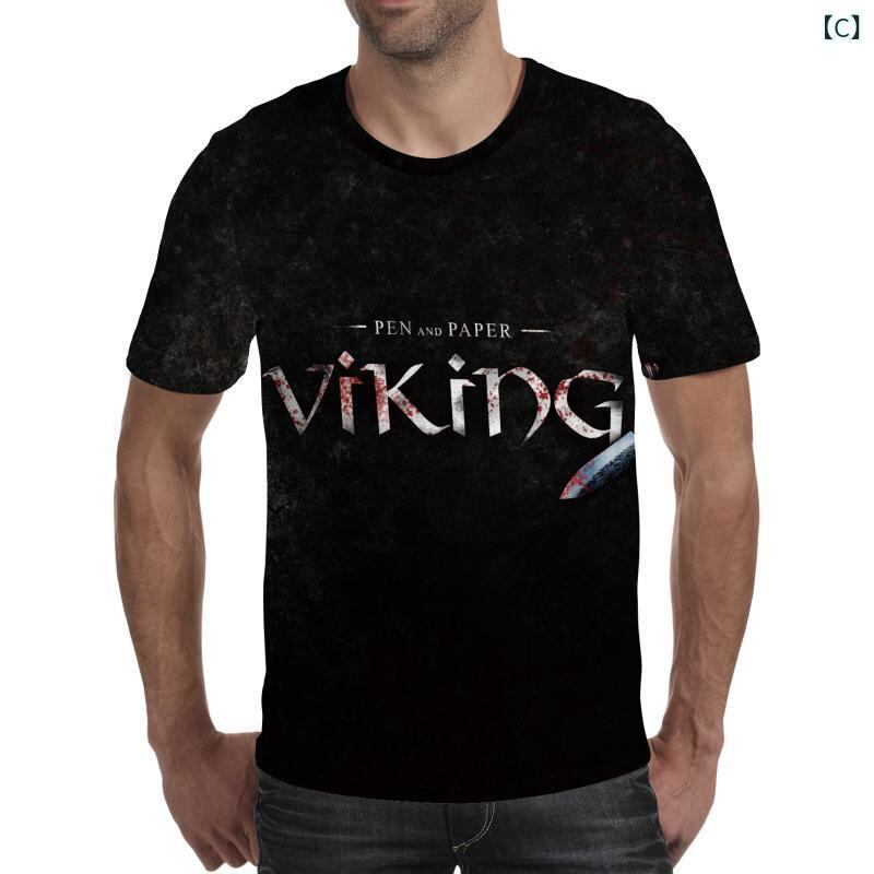 Tシャツ メンズ ヴァイキング ロゴプリント アバターデザイン 半袖 ラウンドネック ストレート ポリエステル 再生繊維 薄手 通気性 ソフトな肌触り カジュアル 普段使い 春夏秋