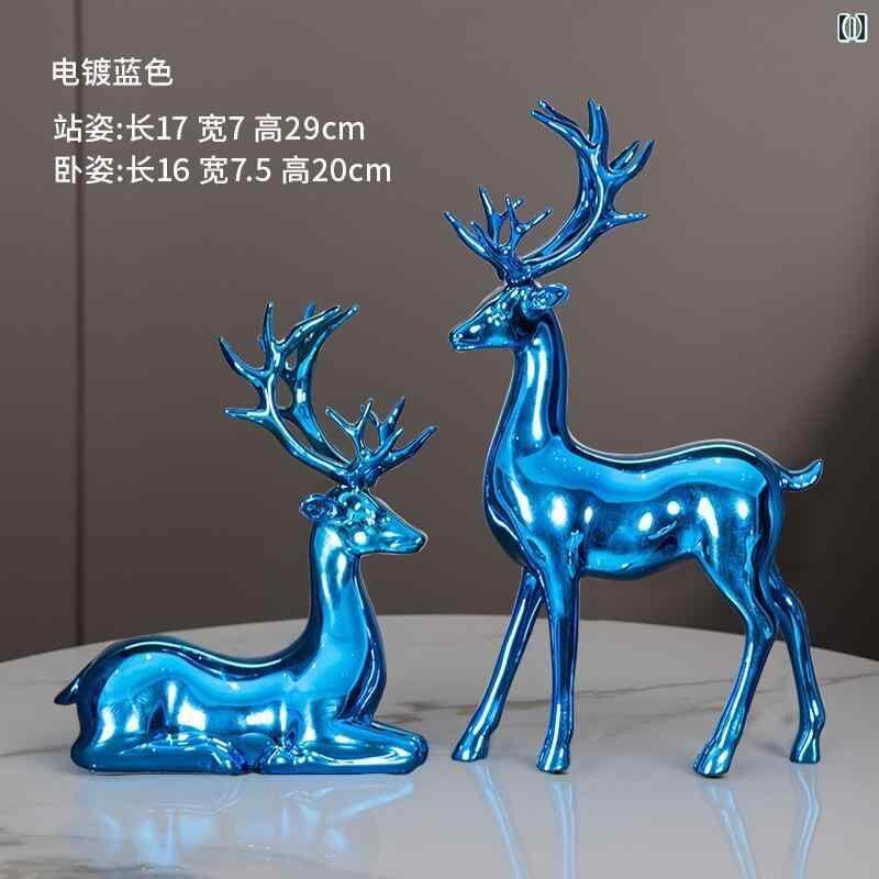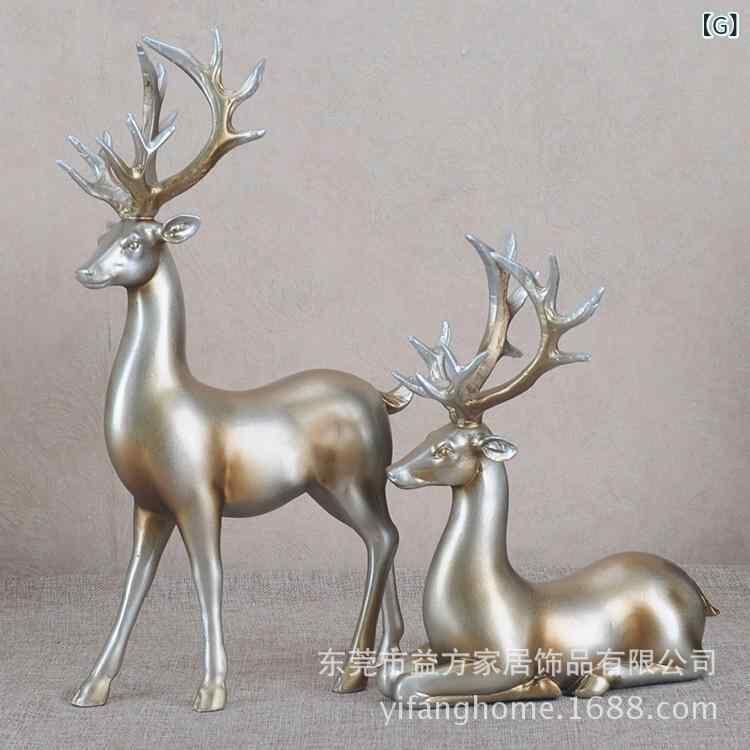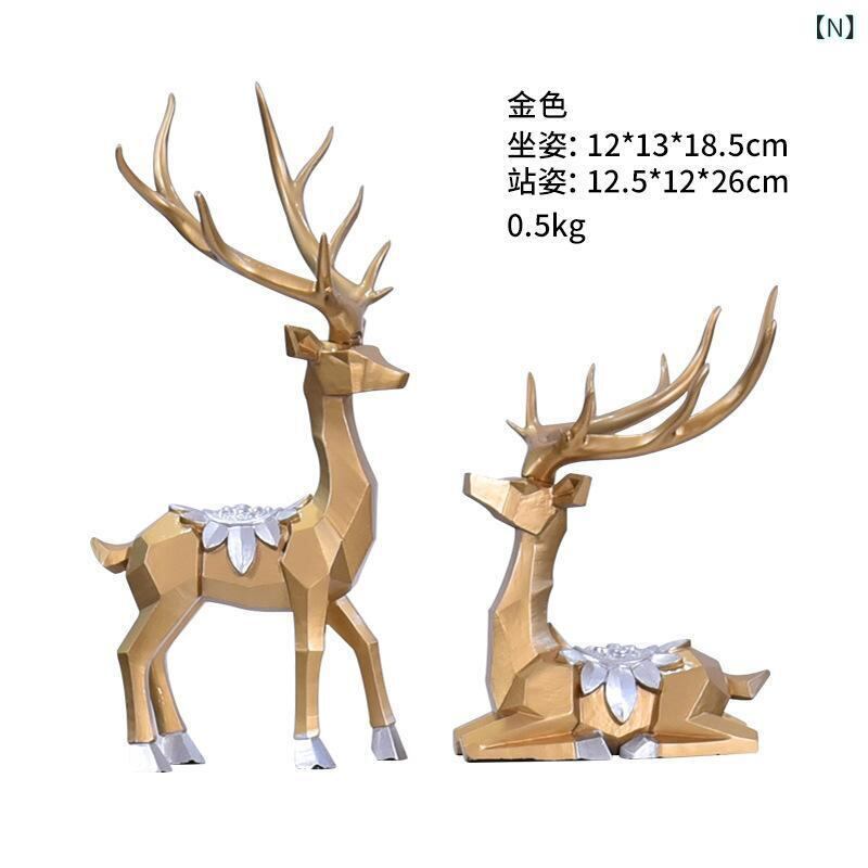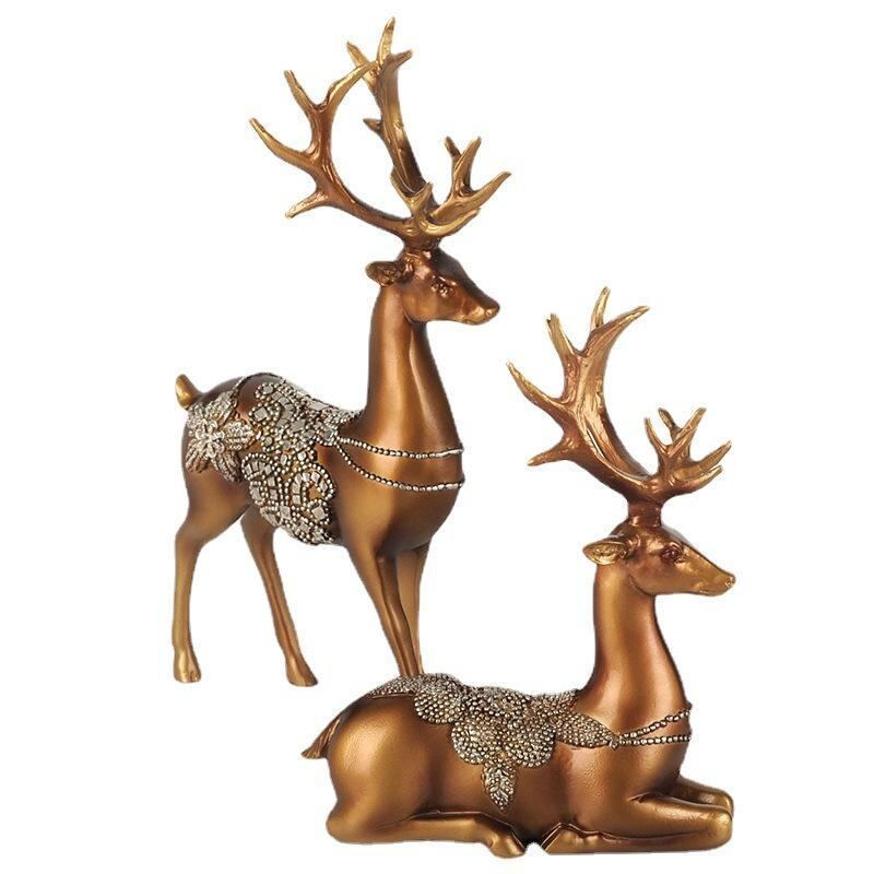 置物 樹脂製 欧米風 モダン スタイリッシュ 立ち姿 座り姿 宝石装飾 ペア 鹿 オブジェ リビング 玄関 インテリア飾り