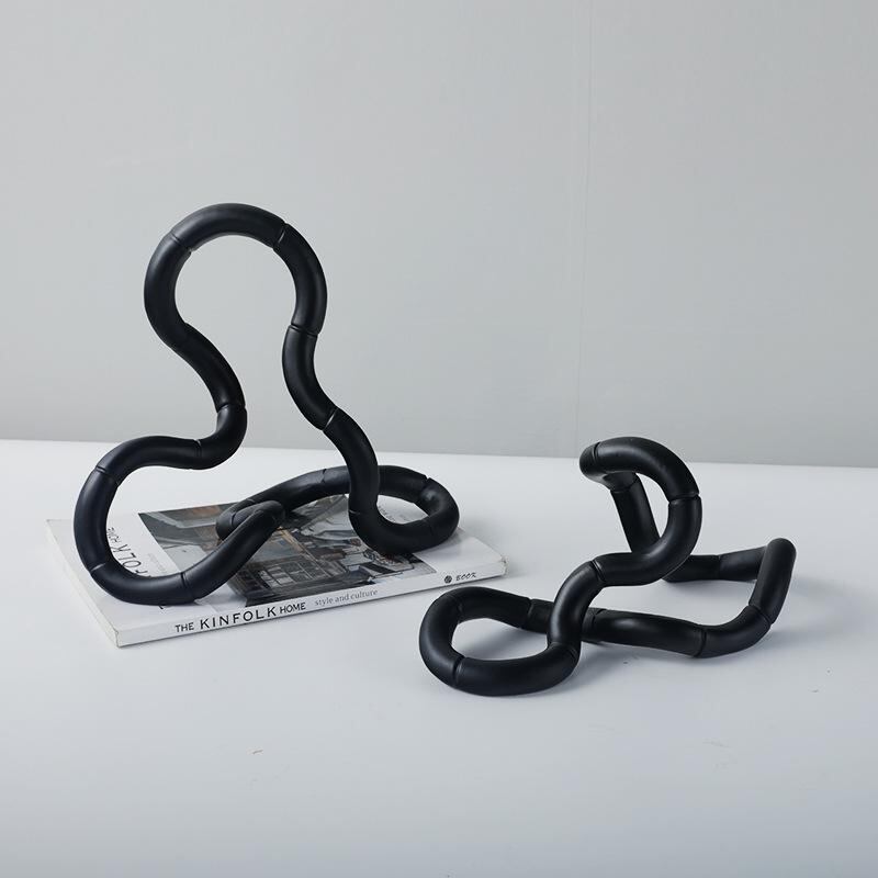 オブジェ モダン シンプル 幾何学 ジオメトリック 白黒 モノトーン 曲線 流線形 樹脂製 アート リビング 玄関 書斎 寝室 インテリア 装飾品 置物 飾り