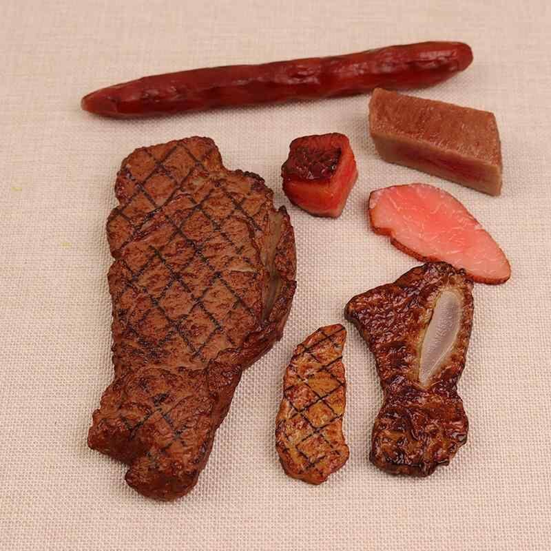 食品サンプル プラスチック製 PVC 焼きイカ 牛肉 ベーコン 魚干物 焼き肉 ソーセージ ミニステーキ リアル フェイクフード 学習用 教育用 展示 店舗装飾 撮影 オブジェ 子供向け 本物そっくり