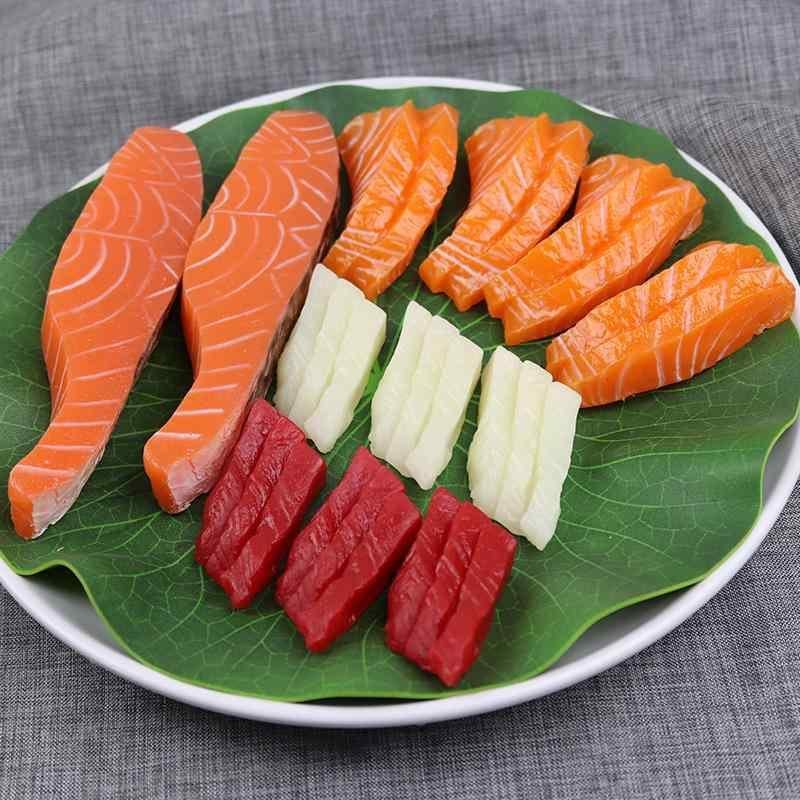 食品サンプル フェイクフード サーモン 鮭 刺身 切り身 4連プレート 寿司ネタ 寿司模型 和食料理 飲食店ディスプレイ 店舗装飾用 PVC製 リアル 精巧な作り 展示用見本