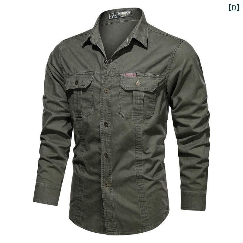 シャツ メンズ 秋 カジュアル ワーク ミリタリースタイル ウォッシュ加工 コットン100% 長袖 ビッグサイズ ルーズフィット エポレット付き 防シワ イージーケア 耐久性 レギュラーカラー