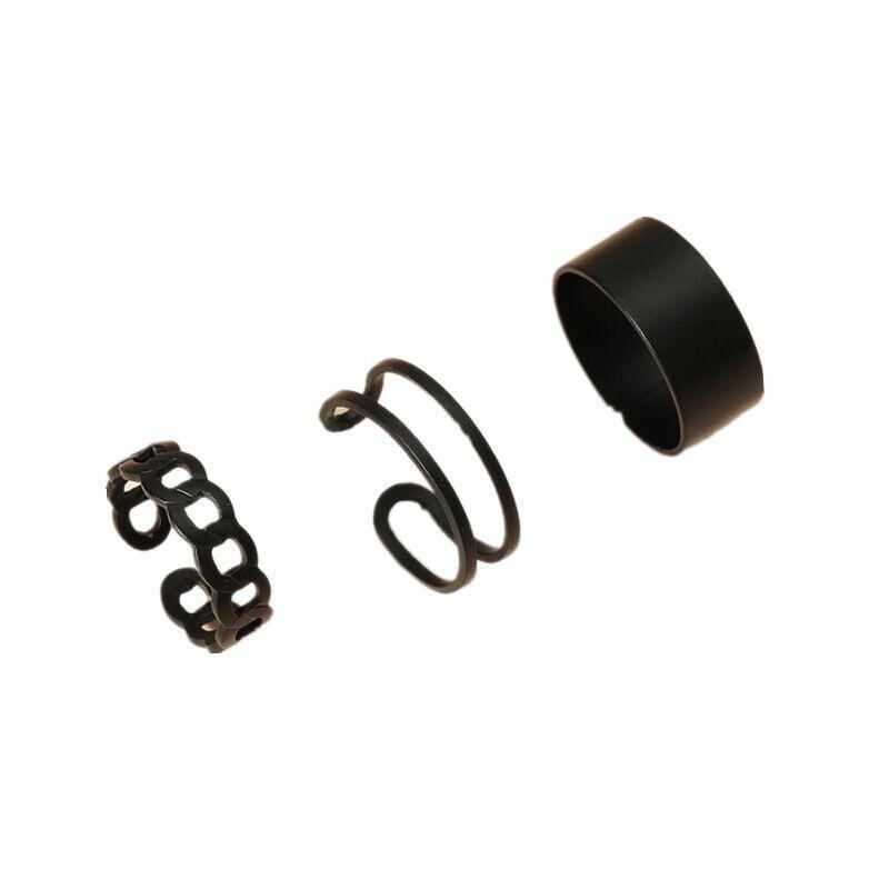 リング 男女兼用 パンクスタイル オープンリング 3点セット インフルエンサー クール 個性派 ユニークデザイン 金属製 幾何学模様 電鍍加工 ブラック カジュアル 普段使い