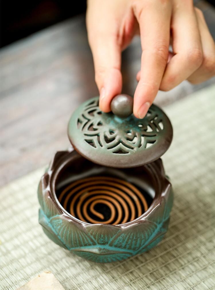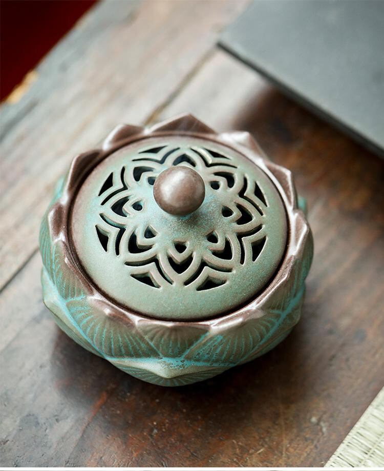 香炉 陶器製 蓮の花 家庭用 レトロ調 古風 室内用 リビング 書斎 寝室 仏具 線香立て お香立て 瞑想 リラックス 癒し 和モダン 茶室 茶道 スピリチュアル おしゃれ