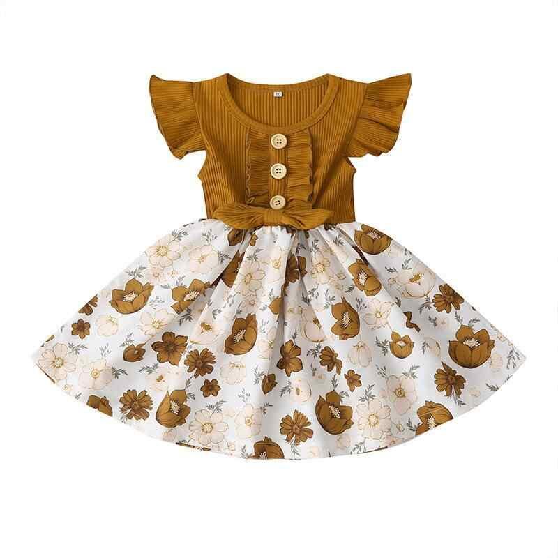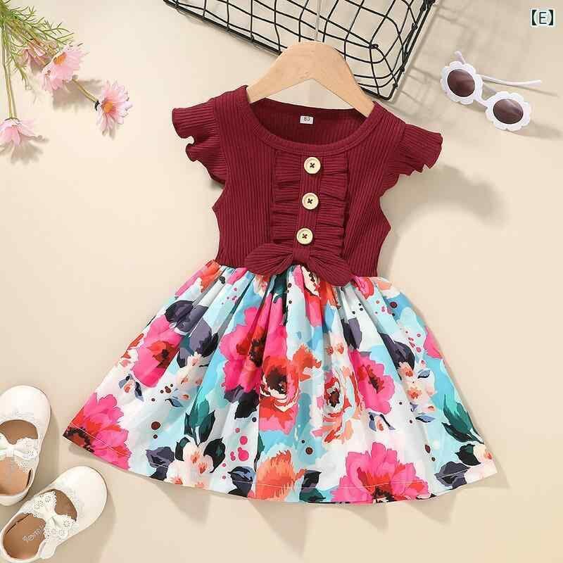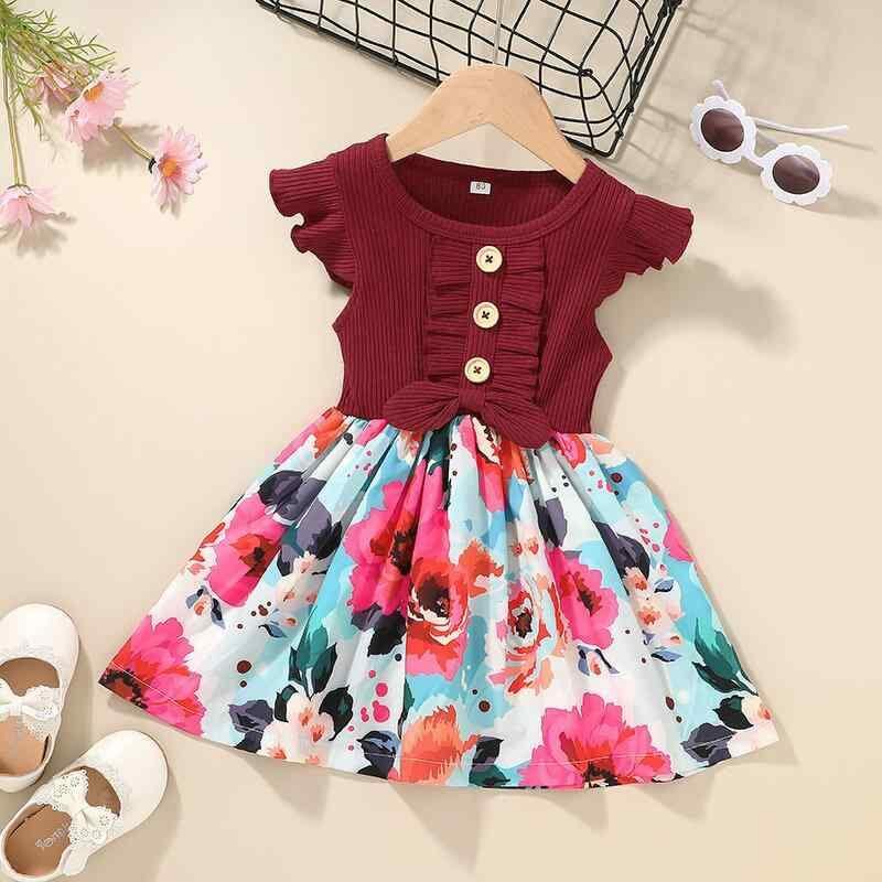 ワンピース 女の子 キッズ 子供服 夏用 綿 コットン リブ 切り替え 花柄 通気性 肌に優しい 韓国風 かわいい Aライン