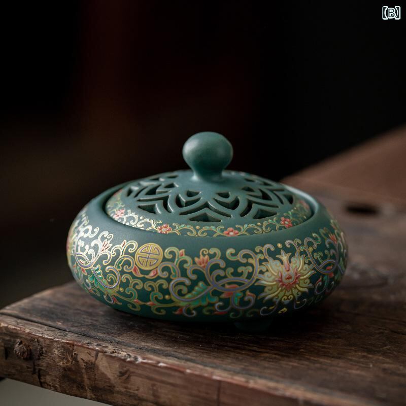 香炉 レトロ アンティーク 陶器製 七宝焼き エナメル彩 家庭用 室内用 お香立て アロマポット 蚊取り線香入れ 沈香 白檀 渦巻き線香用 リビング 玄関 インテリア 癒しアイテム | cybercart