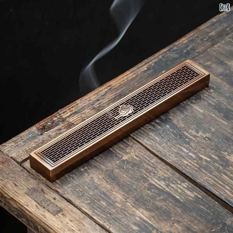 香炉 横型 線香立て 香皿 香箱 家庭用 室内用 銅製 新中式スタイル 白檀 沈香 お香 アロマ 仏具 香道 置物 飾り 癒し リラックス 瞑想 リビング 玄関 和モダン 上品 高級感 | cybercart