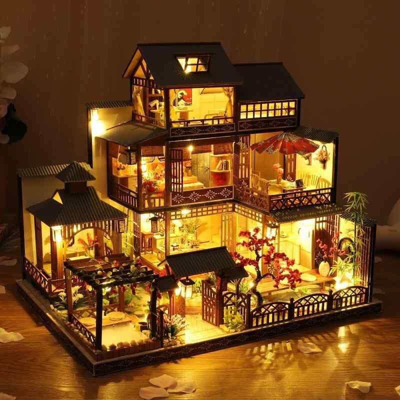 DIYミニチュアハウス 雅泉の庭 和風 古風 建築模型 木製 手作りキット 組み立て玩具 ダストカバー付き 誕生日プレゼント 大人向け ホビー