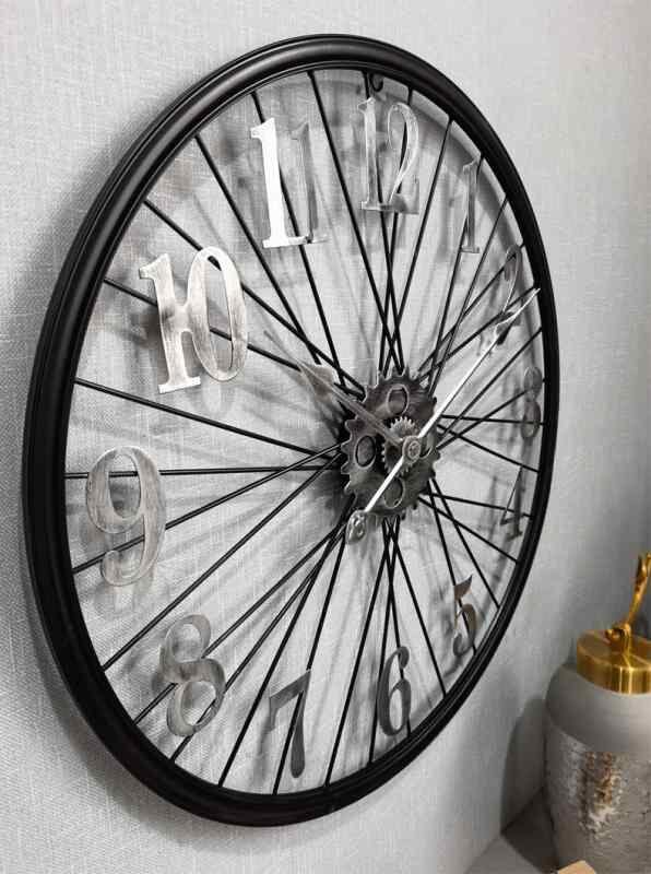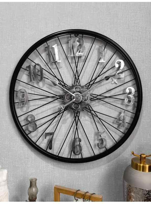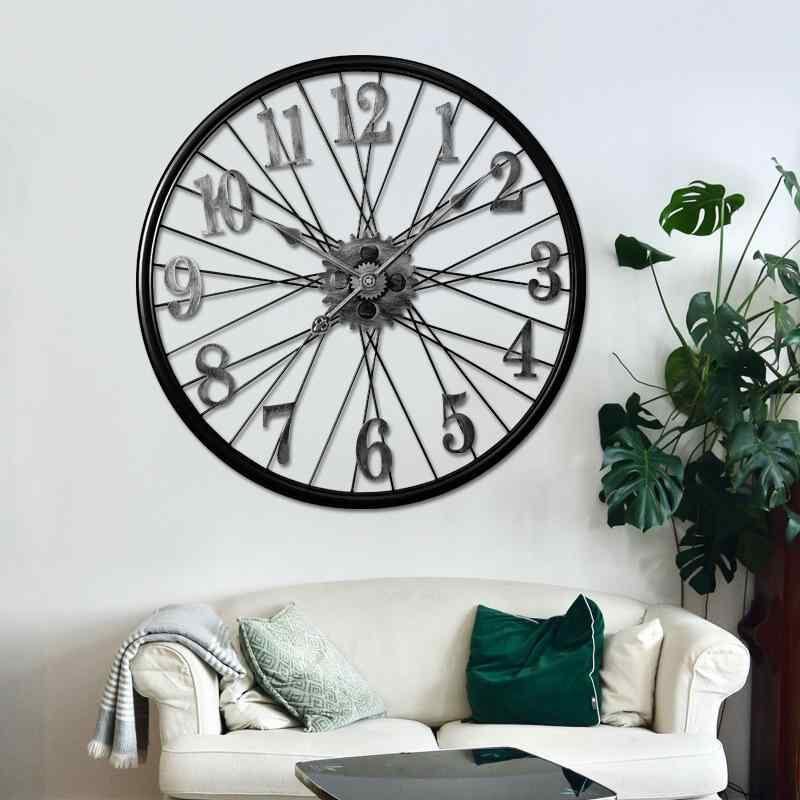 掛け時計 大型 アメリカン レトロ インダストリアル シャビーシック 車輪型 デザイン ウォールクロック 金属製 静音 円形 リビング 寝室 オフィス 店舗用 壁飾り ヴィンテージ アナログ表示