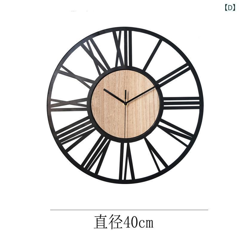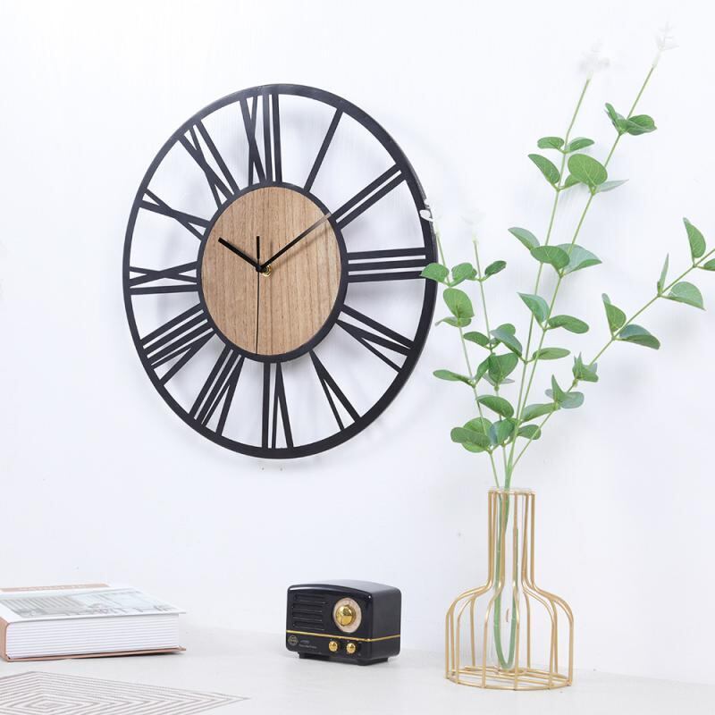 壁掛け時計 モダン シンプル スタイリッシュ アイアン 木製 ローマ数字 静音 電池式 おしゃれ インテリア 装飾 リビング 寝室 書斎 オフィス 円形デザイン