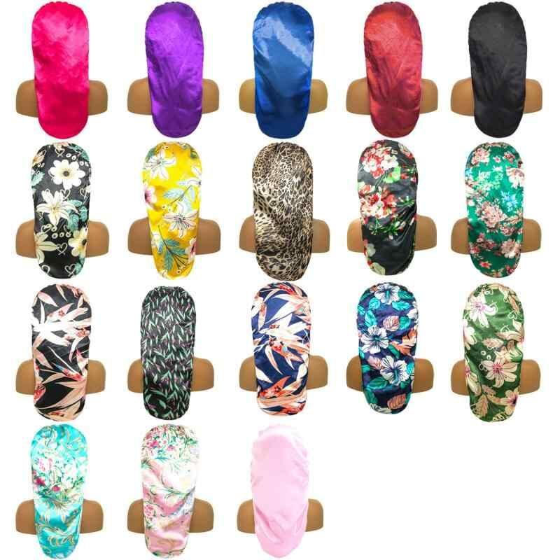 ナイトキャップ シルク調 ポリエステル 伸縮性 ワイドバンド ロング丈 就寝用帽子 ヘアケアキャップ 睡眠時 髪 ダメージケア 保湿 速乾 カジュアル エレガント 高級感 ヒョウ柄 花柄 リーフ柄 多色展開