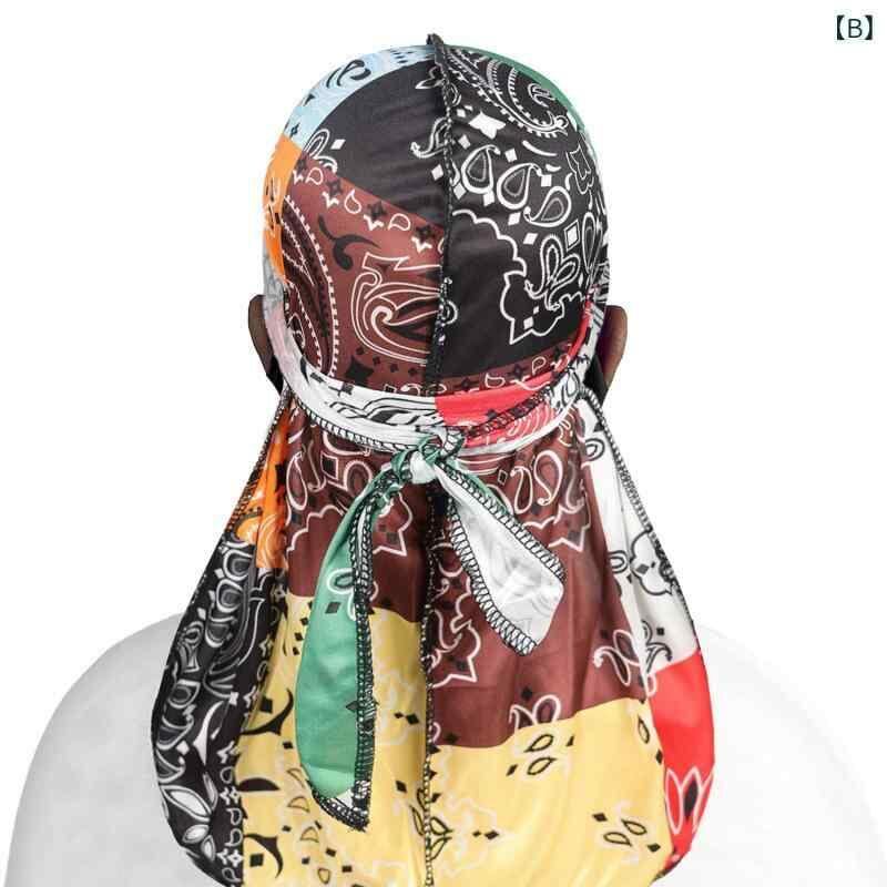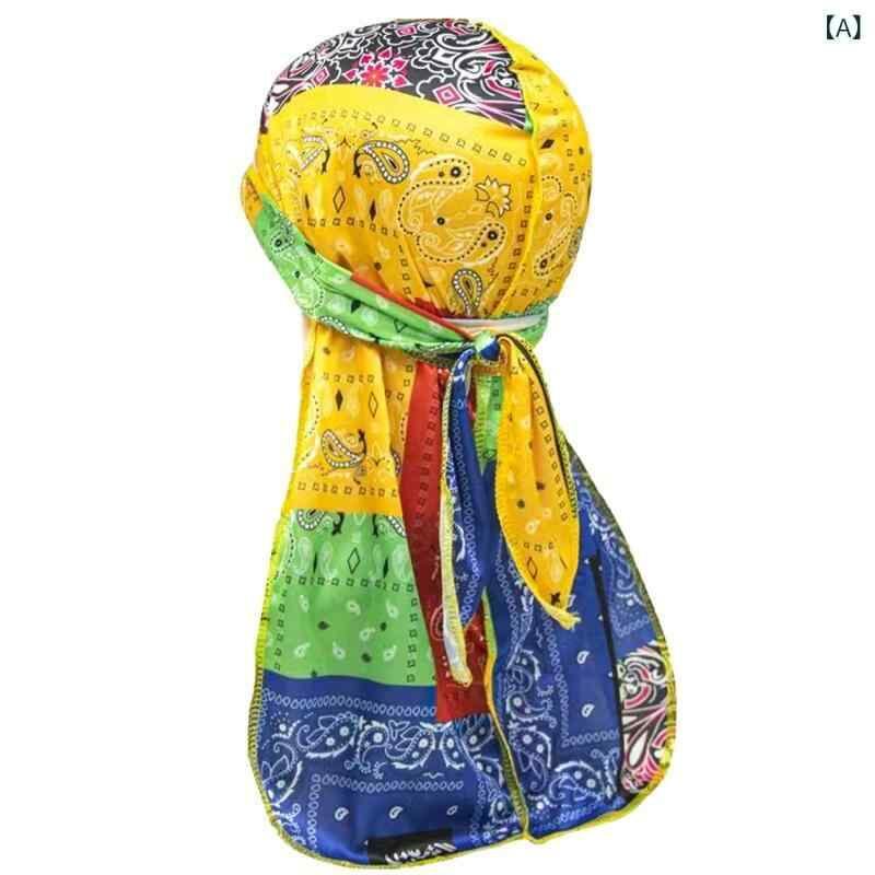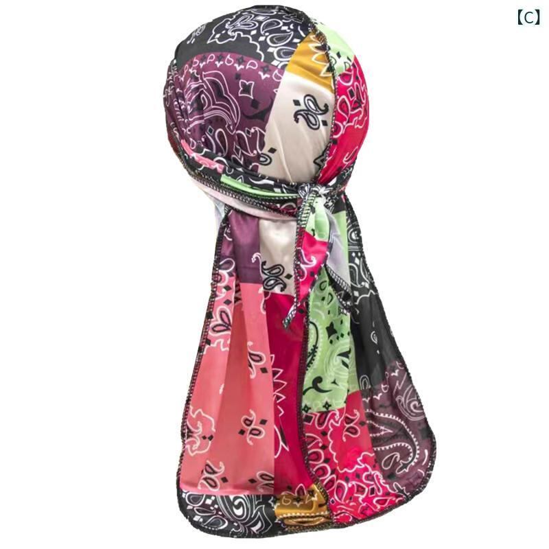 海賊帽 ターバン デュラグ ロングテール ツバなし 調節可能 ポリエステル UVカット 日よけ 通気性 速乾 撥水 ヘアケア 迷彩柄 ストリート 個性派 インスタ映え