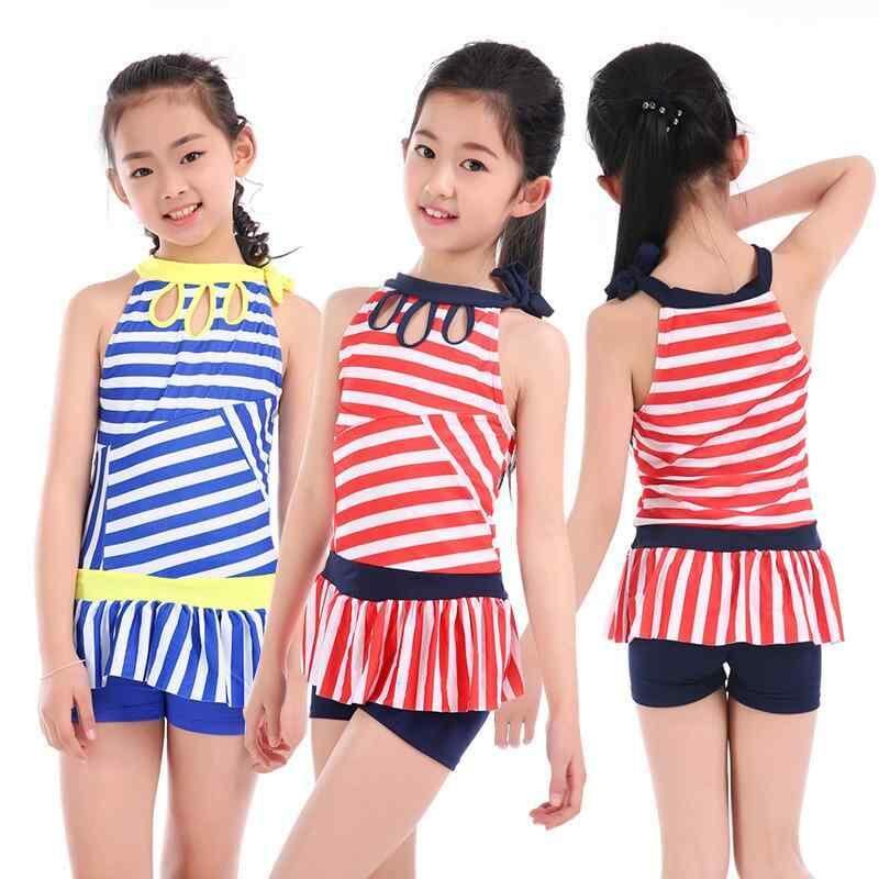 水着 女の子 女児 セパレート スカートタイプ キッズ 幼児 水泳 プール ビーチ 海水浴 ポリエステル素材 韓国風 マリンルック かわいい ネイビー ロイヤルブルー